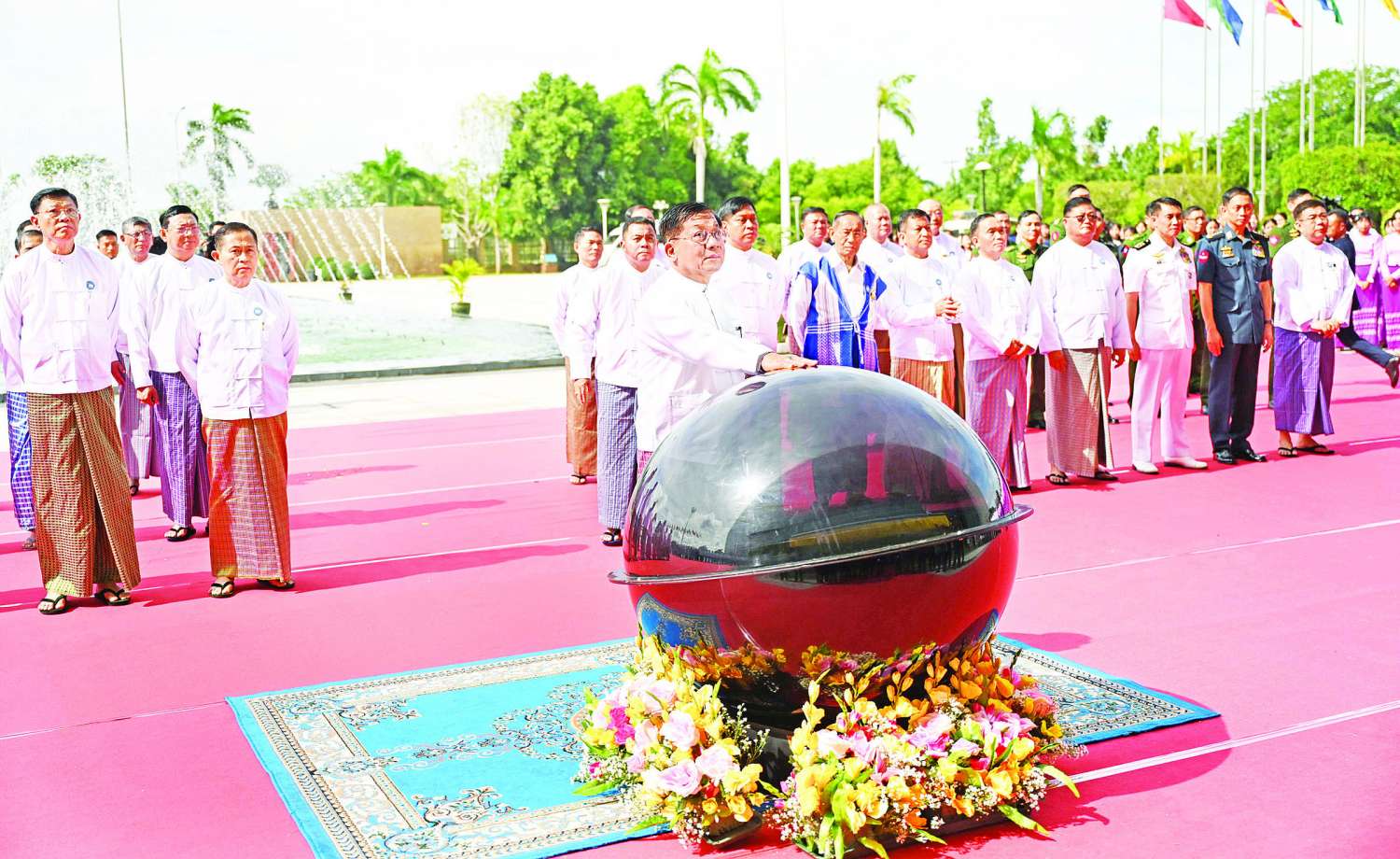 ထို့နောက် နိုင်ငံတော်စီမံအုပ်ချုပ်ရေးကောင်စီဥက္ကဋ္ဌ နိုင်ငံတော်ဝန်ကြီးချုပ် ဗိုလ်ချုပ်မှူးကြီး မင်းအောင်လှိုင်က ညီလာခံအခမ်းအနားမုခ်ဦးအား စက်ခလုပ်နှိပ်ဖွင့်လှစ်ပေးသည်။
