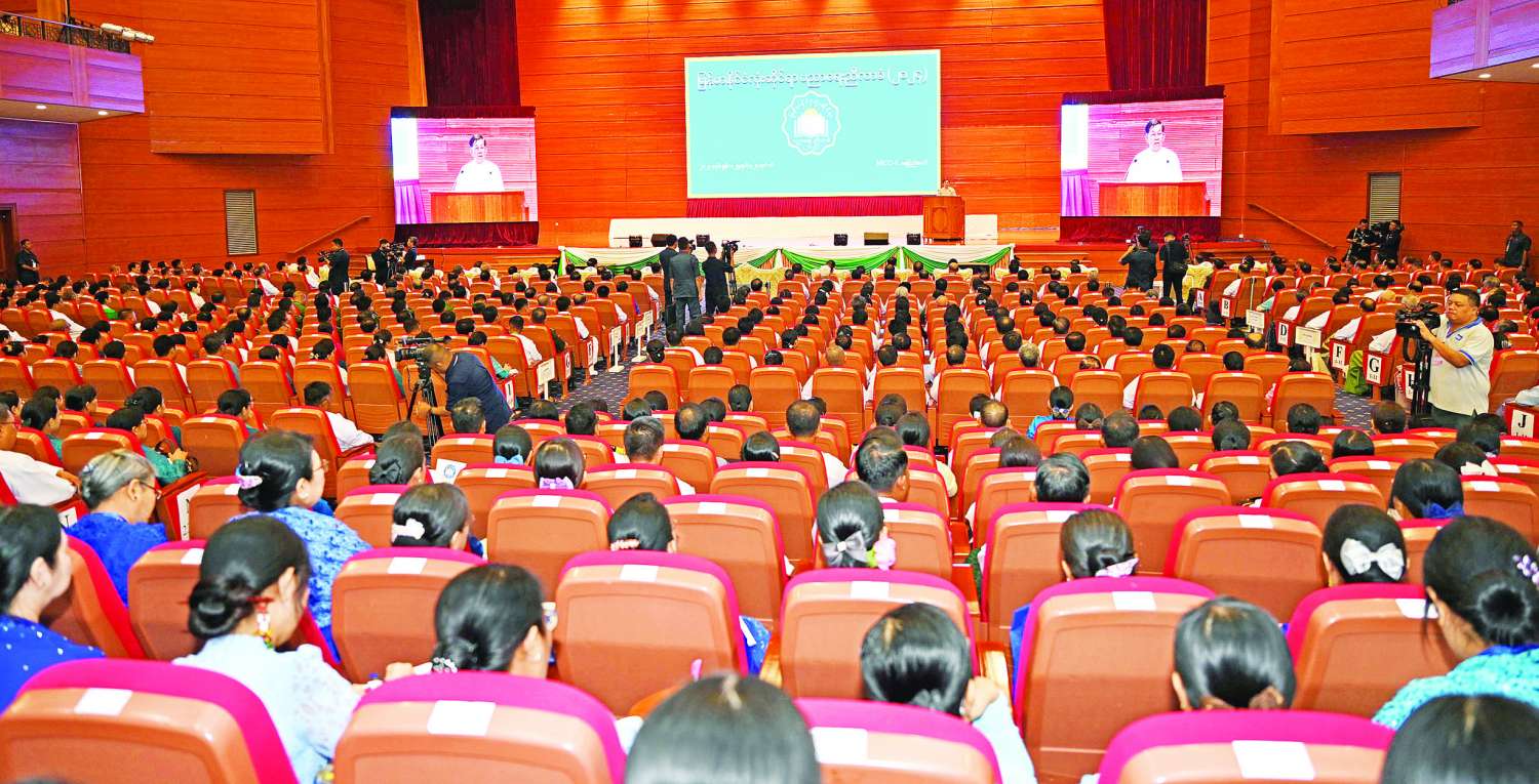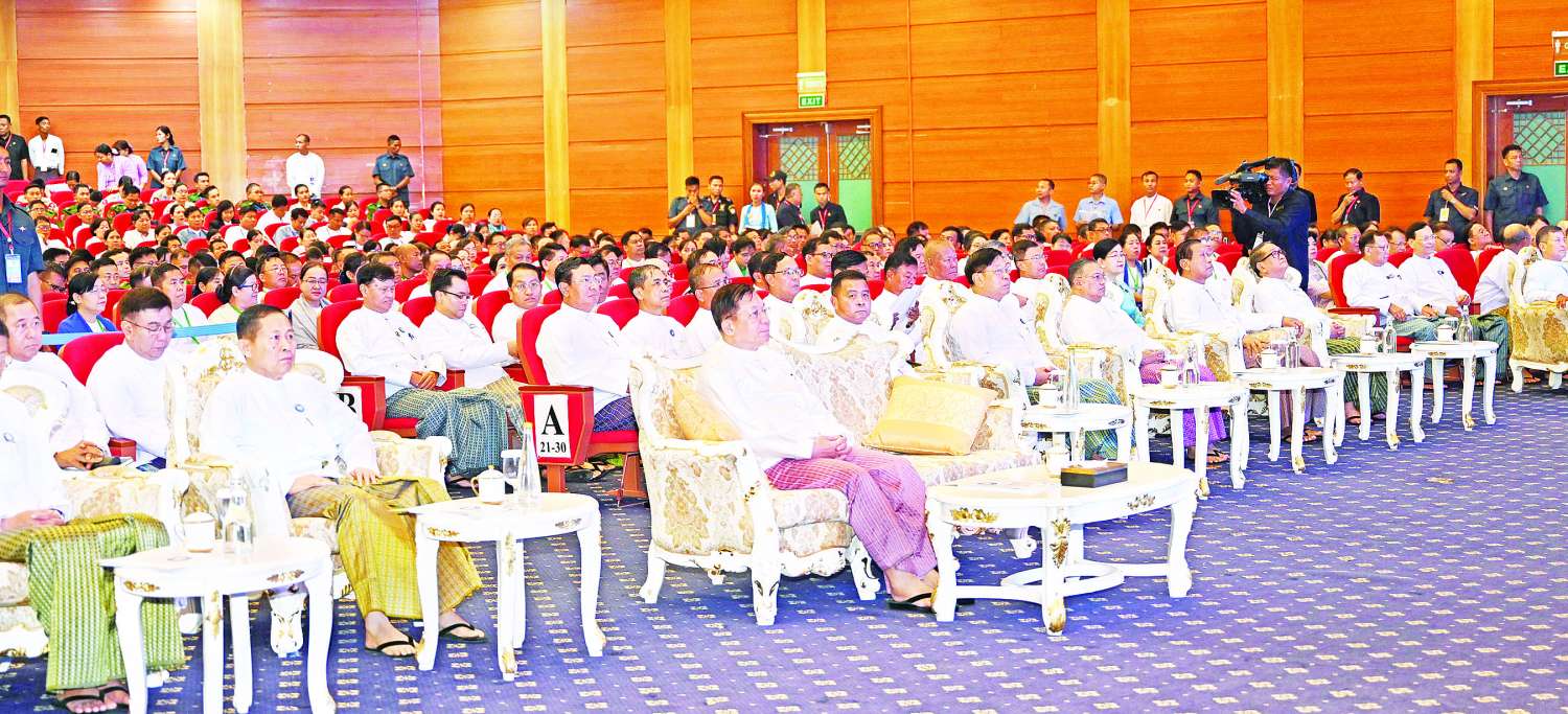 မြန်မာနိုင်ငံလုံးဆိုင်ရာ ပညာရေးညီလာခံ(၂၀၂၄) ဖွင့်ပွဲအခမ်းအနားကို ယနေ့နံနက်ပိုင်းတွင် နေပြည်တော်ရှိ မြန်မာအပြည်ပြည်ဆိုင်ရာ ကွန်ဗင်းရှင်းဗဟိုဌာန-၂ ၌ ကျင်းပပြုလုပ်ရာ နိုင်ငံတော်စီမံအုပ်ချုပ်ရေးကောင်စီဥက္ကဋ္ဌ နိုင်ငံတော်ဝန်ကြီးချုပ် ဗိုလ်ချုပ်မှူးကြီး မင်းအောင်လှိုင် တက်ရောက်၍ မိန့်ခွန်းပြောကြားသည်။