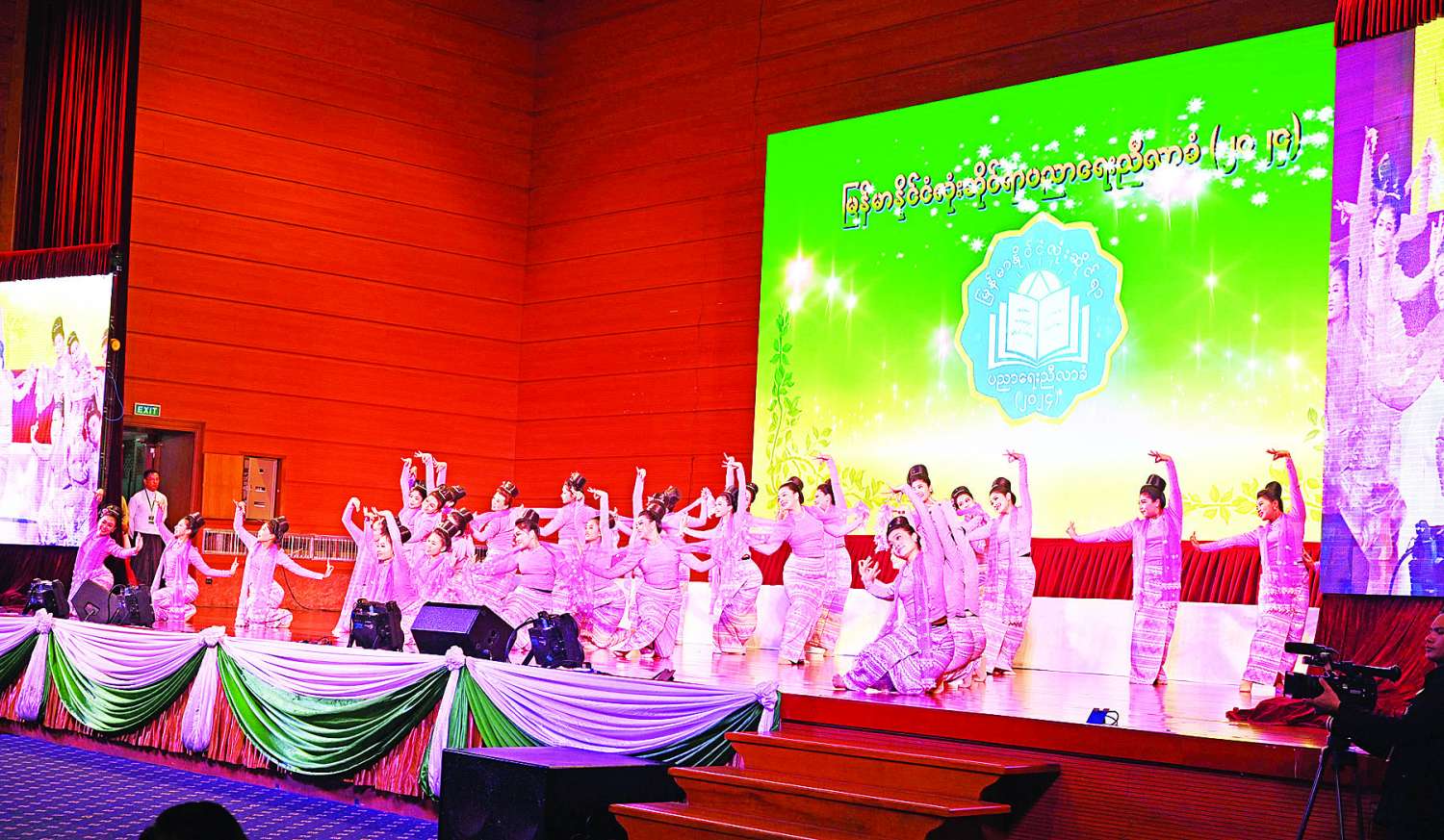 ယင်းနောက် အခမ်းအနားဒုတိယပိုင်းကို ဆက်လက်ကျင်းပပြုလုပ်ရာ သာသနာရေးနှင့် ယဉ်ကျေးမှုဝန်ကြီးဌာန၊ အနုပညာဦးစီးဌာနမှ အနုပညာရှင်များက “ပညာစံအရေး၊ ညီလာခံတေး” အဖွင့်သီချင်းဖြင့် သီဆိုကပြဖျော်ဖြေကြသည်။