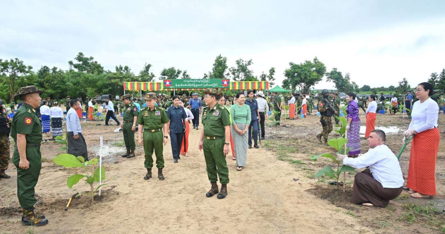 ယနေ့တွင် ၂၀၂၄ ခုနှစ်၊ ကာကွယ်ရေးဦးစီးချုပ်ရုံး (ကြည်း၊ ရေ၊ လေ) မိသားစုများ၏ ဒုတိယအကြိမ်မိုးရာသီသစ်ပင်စိုက်ပျိုးပွဲ အခမ်းအနားကို နေပြည်တော်၊ ဇေယျာသီရိမြို့နယ်၊ ရေဆင်းဆည်အနီး၌ကျင်းပပြုလုပ်ရာ နိုင်ငံတော်စီမံအုပ်ချုပ်ရေး ကောင်စီဥက္ကဋ္ဌ တပ်မတော်ကာကွယ်ရေးဦးစီးချုပ် ဗိုလ်ချုပ်မှူးကြီးမင်းအောင်လှိုင်တက်ရောက်၍ ရတနာတန်းဝင် ကျွန်းပင်ကို ဦးဆောင်စိုက်ပျိုးပေးသည်။