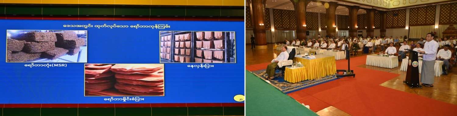 ဦးစွာ တိုင်းဒေသကြီးနှင့်ပြည်နယ်ဝန်ကြီးချုပ်များက တိုင်းဒေသကြီးနှင့် ပြည်နယ်အလိုက် ဒေသဆိုင်ရာအချက်အလက်များ၊ စိုက်ပျိုးရေးနှင့် မွေးမြူရေးလုပ်ငန်းများ အကောင်အထည်ဖော်ဆောင်ရွက်လျက်ရှိမှုနှင့် ထုတ်ကုန်ပစ္စည်းများထုတ်လုပ်နိုင်မှု၊ အသေးစား၊ အငယ်စားနှင့် အလတ်စားစီးပွားရေး(MSME) လုပ်ငန်းများ ဖွံ့ဖြိုးတိုးတက်ရေးဆောင်ရွက်လျက်ရှိမှု၊ စက်မှုဇုန်များအလိုက် ကုန်ထုတ်လုပ်ငန်းများဆောင်ရွက်လျက်ရှိမှု၊ ကျန်းမာရေး၊ ပညာရေးနှင့် ခရီးသွားလုပ်ငန်းများဖွံ့ဖြိုးတိုးတက်ရေး ဆောင်ရွက်လျက်ရှိမှု၊ လူဦးရေနှင့် အိမ်အကြောင်းအရာသန်းခေါင်စာရင်းကောက်ယူမှု လုပ်ငန်းအောင်မြင်စေရေးဆောင်ရွက်လျက်ရှိမှုနှင့် ဒေသအလိုက် တည်ငြိမ်အေးချမ်းရေးနှင့် ဖွံ့ဖြိုးတိုးတက်ရေးလုပ်ငန်းများ ဆက်လက်ဆောင်ရွက်သွားမည့် အခြေအနေများအား အသီးသီးရှင်းလင်းတင်ပြကြသည်။