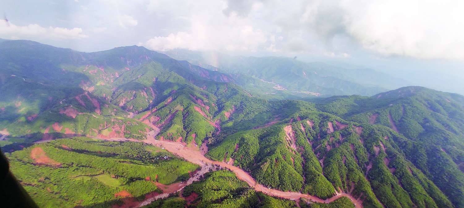 ယင်းနောက် တောင်တရုတ်ပင်လယ်ပြင်တွင် ဖြစ်ပေါ်ခဲ့သော တိုင်ဖွန်းမုန်တိုင်း ရာဂီ၏အရှိန်နှင့် ဘင်္ဂလားပင်လယ်အော် အနောက်အလယ်ပိုင်းနှင့် အနောက်မြောက်ပိုင်းတို့တွင် ဖြစ်ပေါ်နေသော မုန်တိုင်းငယ်၏အရှိန်ကြောင့် စက်တင်ဘာ ၁၀ ရက်မှစတင်၍ နေရာအနှံ့အပြား မိုးအဆက်မပြတ်ရွာသွန်းမှုများဖြစ်ပွားခဲ့ပြီး ချောင်းရေနှင့်မြစ်ရေများ အဆက်မပြတ်မြင့်တက်လာမှုနှင့်အတူ နေပြည်တော်ကောင်စီနယ်မြေအတွင်းရှိ မြို့နယ်အချို့တို့တွင် ရေကြီးရေလျှံမှုများဖြစ်ပေါ်ခဲ့မှု၏ ရေစီးဆင်းရာအစဖြစ်သည့် ရှမ်းကုန်းပြင်မြင့်နှင့် ဆက်စပ်တောင်ကုန်း တောင်တန်းများပေါ်မှ ရေများစီးဆင်းတိုက်စားခဲ့မှုကြောင့် တောင်ပြို၊ မြေပြိုမှုများဖြစ်ပေါ်နေမှု၊ အဆိုပါ တောင်ကုန်းတောင်တန်းများပေါ်မှ ဖြတ်သန်းစီးဆင်းလာသည့် တောင်ကျချောင်းရေများသည် မုန်ချောင်း၊ နဝင်းချောင်း၊ ကင်းသာချောင်းတို့နှင့် ၎င်းချောင်းများအားလုံးစုစည်း၍ စီးဝင်ရာဆင်သေချောင်း တစ်လျှောက်တို့၌ တောင်ကျချောင်းရေအရှိန်အဟုန်ဖြင့် စီးဆင်းခဲ့မှုကြောင့် ရေတိုက်စားရာလမ်းကြောင်း ကြီးများဖြစ်ပေါ်နေမှုနှင့် ရေပြန်လည်ကျဆင်းသွားပြီးနောက် သဲနုန်းများ၊ အပျက်အစီးများဖြစ်ပေါ်ကျန်ရှိနေမှု၊ စိုက်ဧကအများအပြားပျက်စီးခဲ့မှုနှင့် ရေစီးဆင်းရာလမ်းကြောင်းနှင့်နီးစပ်သည့် အချို့သောကျေးရွာများ ရေဖုံးလွှမ်းခဲ့မှုဖြစ်ပေါ်ခဲ့ပြီး ထိခိုက်ပျက်စီးခဲ့ရမှုအခြေအနေများကို ရဟတ်ယာဉ်ပေါ်မှ အသေးစိတ်ကြည့်ရှုစစ်ဆေးခဲ့ပြီး ပြန်လည်ထူထောင်ရေးလုပ်ငန်းများနှင့် သဘာဝဘေးအန္တရာယ် ကြိုတင်ကာကွယ်ရေးလုပ်ငန်းများ ဆက်လက်ဆောင်ရွက်ရမည့် အခြေအနေများနှင့်ပတ်သက်၍ တာဝန်ရှိသူများကိုမှာကြားခဲ့ကြောင်း သတင်းရရှိသည်။