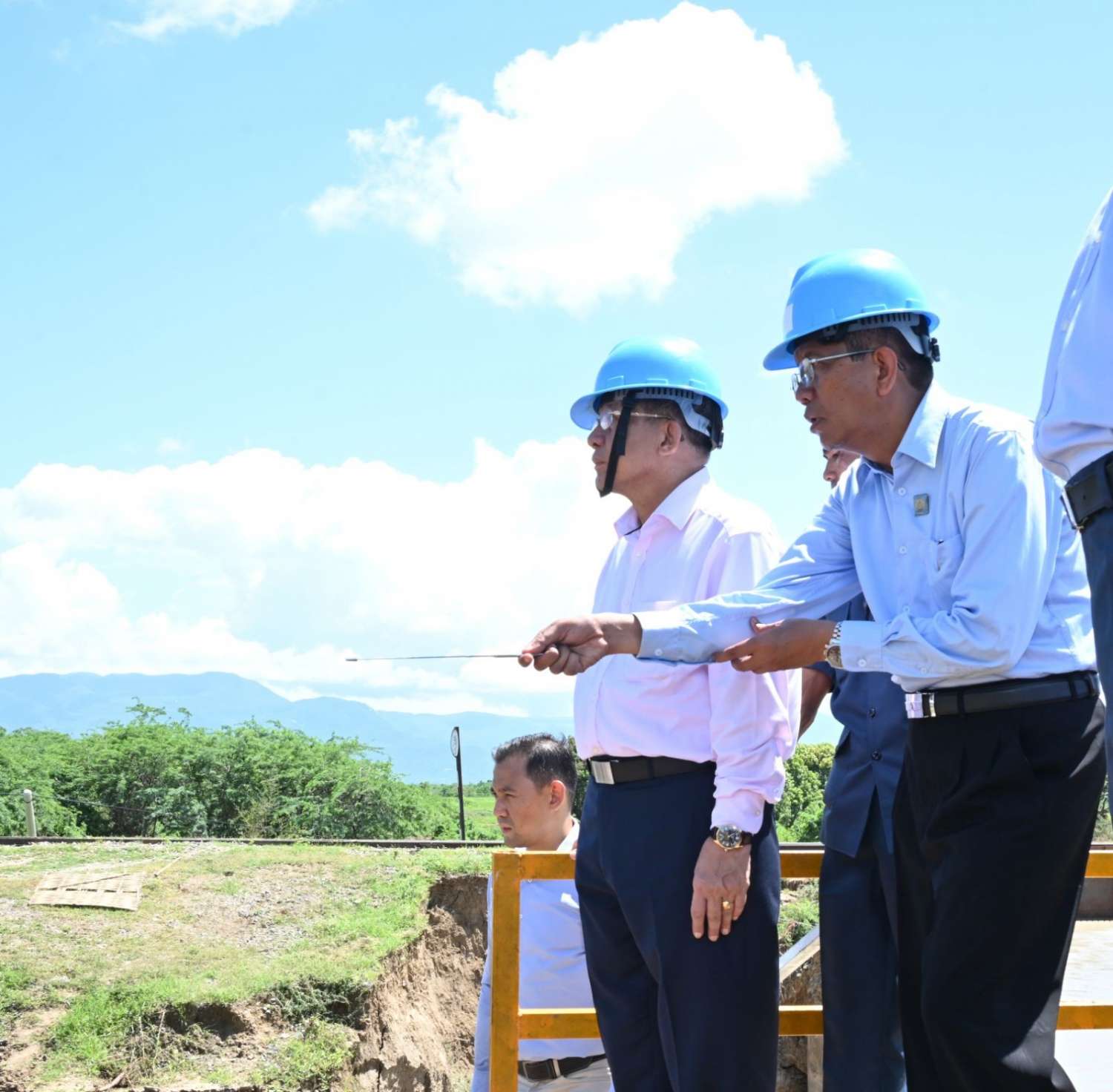 ယင်းနောက် နိုင်ငံတော်စီမံအုပ်ချုပ်ရေးကောင်စီဥက္ကဋ္ဌ နိုင်ငံတော်ဝန်ကြီးချုပ်နှင့် အဖွဲ့ဝင်များသည် ရေကြီးရေလျှံမှုဖြစ်ပေါ်စဉ် ရေအလုံးအရင်းဖြင့် မြင့်တက်တိုက်စားခဲ့မှုကြောင့် တံတားအမှတ် ၆၉၁(အဆန်)၏ ရန်ကုန်ဘက်ခြမ်းတံတား ချဉ်းကပ်တာဘောင် ရေတိုက်စားပျက်စီးခဲ့မှုအား ရထားလမ်းဖြုတ်သိမ်း၍ စက်ယာဉ်ယန်တရားများဖြင့် တာဘောင်မြေဖို့ပြုပြင်ဆောင်ရွက်ခြင်းနှင့် သံလမ်းပြန်လည်ခင်းခြင်းလုပ်ငန်းဆောင်ရွက်နေမှု၊ တံတားအမှတ် ၆၉၁(အစုန်)၏ သံဘောင် ၄ ခုပြုတ်ကျခဲ့ပြီး တိုင်အမှတ် ၃ ရေစီးအားဖြင့် မျောပါပျက်စီးခဲ့မှုအား Triple Double Bailey တံတား (၉၀) ပေထိုး၍ ပြန်လည်ပြုပြင်ဆောင်ရွက်နေမှုလုပ်ငန်းခွင်သို့ နေရာရောက်ရှိပြီး လုပ်ငန်းဆောင်ရွက်နေမှုအခြေအနေများနှင့် ရေစီးအားကြောင့် ထိခိုက်ပျက်စီးခဲ့မှုများကို လိုက်လံကြည့်ရှုစစ်ဆေးကာ လုပ်ငန်းဆောင်ရွက်နေသူများအား ရင်းရင်းနှီးနှီးနှုတ်ဆက်သည်။