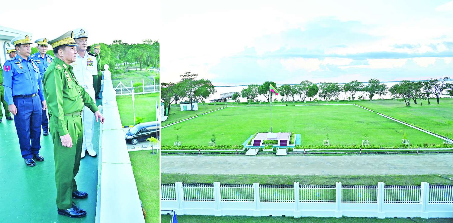 ယင်းနောက် နိုင်ငံတော်စီမံအုပ်ချုပ်ရေးကောင်စီဥက္ကဋ္ဌ တပ်မတော်ကာကွယ်ရေးဦးစီးချုပ်နှင့်အဖွဲ့ဝင်များသည် တပ်တော်ဝင်ရေယာဉ်များဖြစ်သော ၄၈ မီတာ အမြန်သွားကင်းလှည့်ရေယာဉ်(၄)စီးတို့အား လှည့်လည်ကြည့်ရှုကြရာ တာဝန်ရှိသူများက လိုက်လံရှင်းလင်းပြသကြသည်။ ၎င်းနောက် နိုင်ငံတော်စီမံအုပ်ချုပ်ရေးကောင်စီဥက္ကဋ္ဌ တပ်မတော်ကာကွယ်ရေးဦးစီးချုပ်သည် အမြန်သွားကင်းလှည့်ရေယာဉ်ပေါ်ရှိ ဧည့်သည်တော်မှတ်တမ်းတင်စာအုပ်တွင် မှတ်တမ်းတင်လက်မှတ်ရေးထိုးသည်။