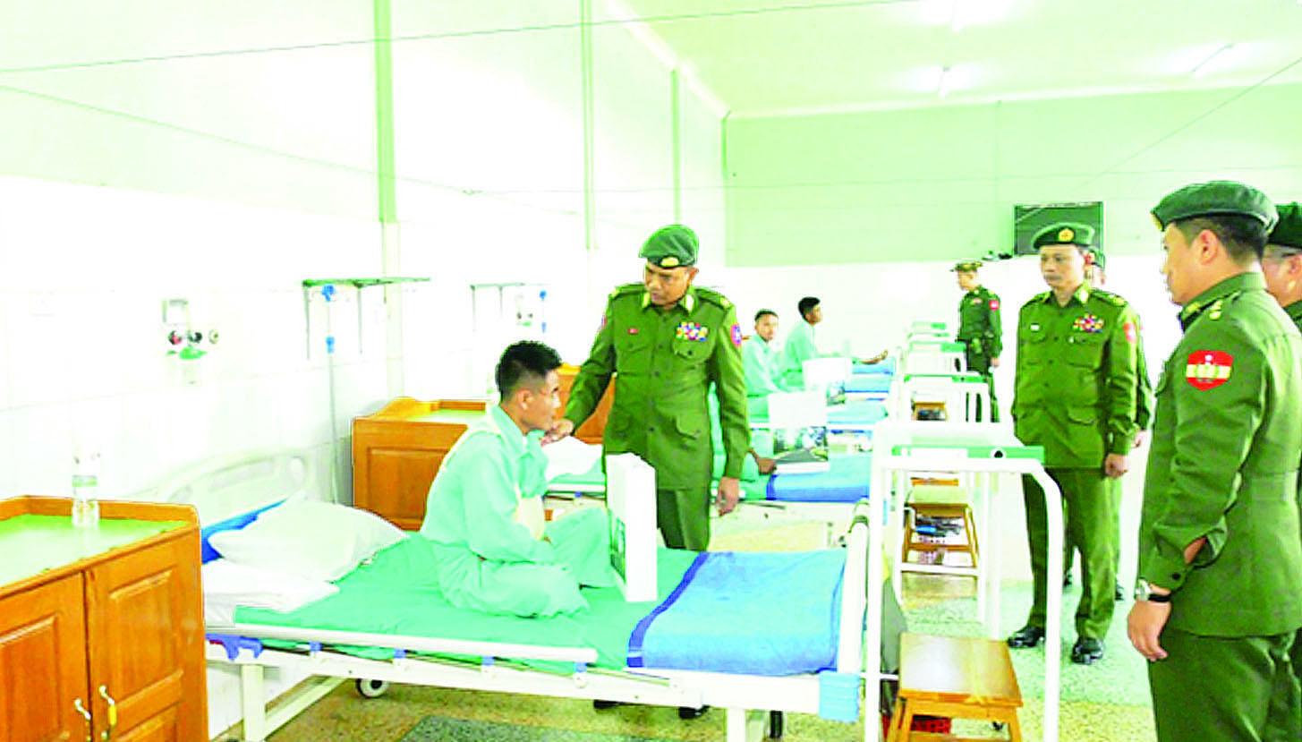 မန္တလေးတိုင်းဒေသကြီး၊ ပြင်ဦးလွင်မြို့ရှိ နယ်မြေခံတပ်မတော်ဆေးရုံ၌ တက်ရောက်ဆေးကုသမှုခံယူလျက်ရှိသော အရာရှိ၊ စစ်သည်များ၊ မိသားစုဝင်များနှင့် ဒေသခံပြည်သူများအား ယနေ့မွန်းလွဲပိုင်းတွင် အလယ်ပိုင်းတိုင်းစစ်ဌာနချုပ် တိုင်းမှူး ဗိုလ်မှူးချုပ် ကျော်ကိုထိုက်နှင့် တာဝန်ရှိသူများက သွားရောက်ကြည့်ရှု၍ တစ်ဦးချင်း၏ ရောဂါဖြစ်ပွားမှု၊ ဆေးဝါးကုသပေးထားမှုနှင့် ကျန်းမာရေးတိုးတက်ကောင်းမွန်မှုအခြေအနေများအား ရင်းရင်းနှီးနှီးမေးမြန်းအားပေးစကားပြောကြားပြီး ဆေးရုံတက်လူနာများအတွက် စားသောက်ဖွယ်ရာများ ထောက်ပံ့ပေးအပ်သည်။