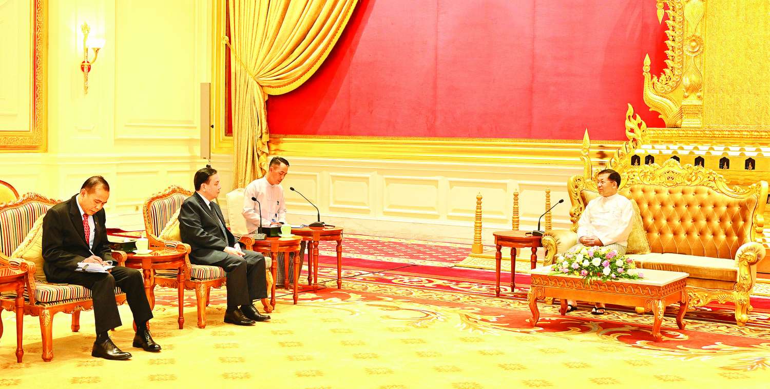 နိုင်ငံတော်စီမံအုပ်ချုပ်ရေးကောင်စီဥက္ကဋ္ဌ နိုင်ငံတော်ဝန်ကြီးချုပ် ဗိုလ်ချုပ်မှူးကြီး မင်းအောင်လှိုင်သည် တာဝန်ပြီးဆုံး၍ ပြန်လည်ထွက်ခွာမည့် မြန်မာနိုင်ငံဆိုင်ရာ လာအိုနိုင်ငံ သံအမတ်ကြီး H. E. Mr. Heuangseng KHAMDALAVONG အား ယနေ့နံနက်ပိုင်းတွင် နေပြည်တော်ရှိ နိုင်ငံတော်စီမံအုပ်ချုပ်ရေးကောင်စီဥက္ကဋ္ဌရုံး၊ သံတမန်ဆောင်ဧည့်ခန်းမ၌ လက်ခံတွေ့ဆုံသည်။