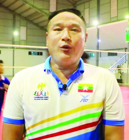 ကျွန်တော်က ကရင်ပြည်နယ် ဘော်လီဘောနည်းပြချုပ်ဖြစ်ပါတယ်။ အမျိုးသား၊ အမျိုးသမီးအသင်း နှစ်သင်းလုံးရဲ့ နည်းပြဆရာလည်းဖြစ်သလို အုပ်ချုပ်သူလည်းဖြစ်ပါတယ်။ ၂၀၂၄ ခုနှစ် ပဉ္စမအကြိမ်မြောက် အမျိုးသားအားကစားပွဲတော်ကို ကရင်ပြည်နယ်အနေနဲ့ အားကစားနည်း ၂၃ နည်းနဲ့ ဝင်ရောက်ယှဉ်ပြိုင်ပြီး လူဦးရေ ၄၉၃ ဦး ဝင်ရောက်ယှဉ်ပြိုင်သွားမှာဖြစ်ပါတယ်။ ဘော်လီဘောအားကစားနည်းကိုတော့ အောက်တိုဘာ ၁ ရက်ကစပြီးတော့ စခန်းသွင်းလေ့ကျင့်ခဲ့ပြီး အမျိုးသား ၁၂ ဦး၊ အမျိုးသမီး ၁၂ ဦး စုစုပေါင်း ၂၄ဦး၊ နည်းပြ အုပ်ချုပ် ခြောက်ဦး စုစုပေါင်း ၃၀ နဲ့ ဝင်ရောက်ယှဉ်ပြိုင်ခဲ့တာဖြစ်ပါတယ်။ ယခုအသက် (၂၀) အောက် အမျိုးသားဘော်လီဘောအသင်းအနေနဲ့ ဖိုင်နယ်အဆင့်ကို တက်ရောက်ပြီး ရွှေတံဆိပ်ဆုကို ဆွတ်ခူးနိုင်မယ်လို့ မျှော်မှန်းထားပါတယ်။ ပြည်နယ်အစိုးရအဖွဲ့ရဲ့ ညွှန်ကြားချက်နဲ့ ပြေးခုန်ပစ်အားကစားနည်းကို နှစ်လုံးပေါက် စခန်းသွင်းလေ့ကျင့်ပါတယ်။ ဘော်လီဘောအားကစားနည်းမှာလည်း နှစ်စဉ်နှစ်စဉ် ဆုတွေရပါတယ်။ ကရင်ပြည်နယ်အနေနဲ့ ကိုယ်စားပြုဝင်ရောက်ယှဉ်ပြိုင်တဲ့ အားကစားနည်းတွေမှာ ရွှေတံဆိပ်ဆုတွေ ဆွတ်ခူးနိုင်ဖို့အတွက် ပြည်နယ်အစိုးရဝန်ကြီးချုပ်ရဲ့ ညွှန်ကြားချက်နဲ့အညီ ကြိုးစားဆောင်ရွက်နေပါတယ်။ အားကစားသမားတွေရဲ့ နေထိုင်စားသောက်ရေး၊ လေ့ကျင့်ရေး၊ ကျန်းမားရေးအတွက်ကိုလည်း အားကစားသမားများ စခန်းသွင်းလေ့ကျင့်နေတဲ့ နေထိုင်ရာနေရာအလိုက် ပြည်နယ်အစိုးရရဲ့ ခွင့်ပြုချက်နဲ့ ကျန်းမာရေးဝန်ကြီးဌာနနဲ့လည်း ပူးပေါင်းပြီး ကျန်းမာရေးစောင့်ရှောက်မှုစင်တာတွေ ဖွင့်လှစ်ကာ ကျန်းမာရေးစောင့်ရှောက်မှုများ ဆောင်ရွက်ပေးလျက်ရှိပါတယ်။ ဒါကြောင့်မို့ ၂၀၂၄ ခုနှစ် ပဉ္စမအကြိမ်မြောက် အမျိုးသားအားကစားပွဲတော်မှာ ကရင်ပြည်နယ် အားကစားအသင်းများ အောင်မြင်မှုရရှိဖို့အတွက် ရွှေဆံဆိပ်ဆုများရရှိအောင် ကြိုးစားဆောင်ရွက်သွားကြမယ်လို့ ပြောကြားလိုပါတယ်။
