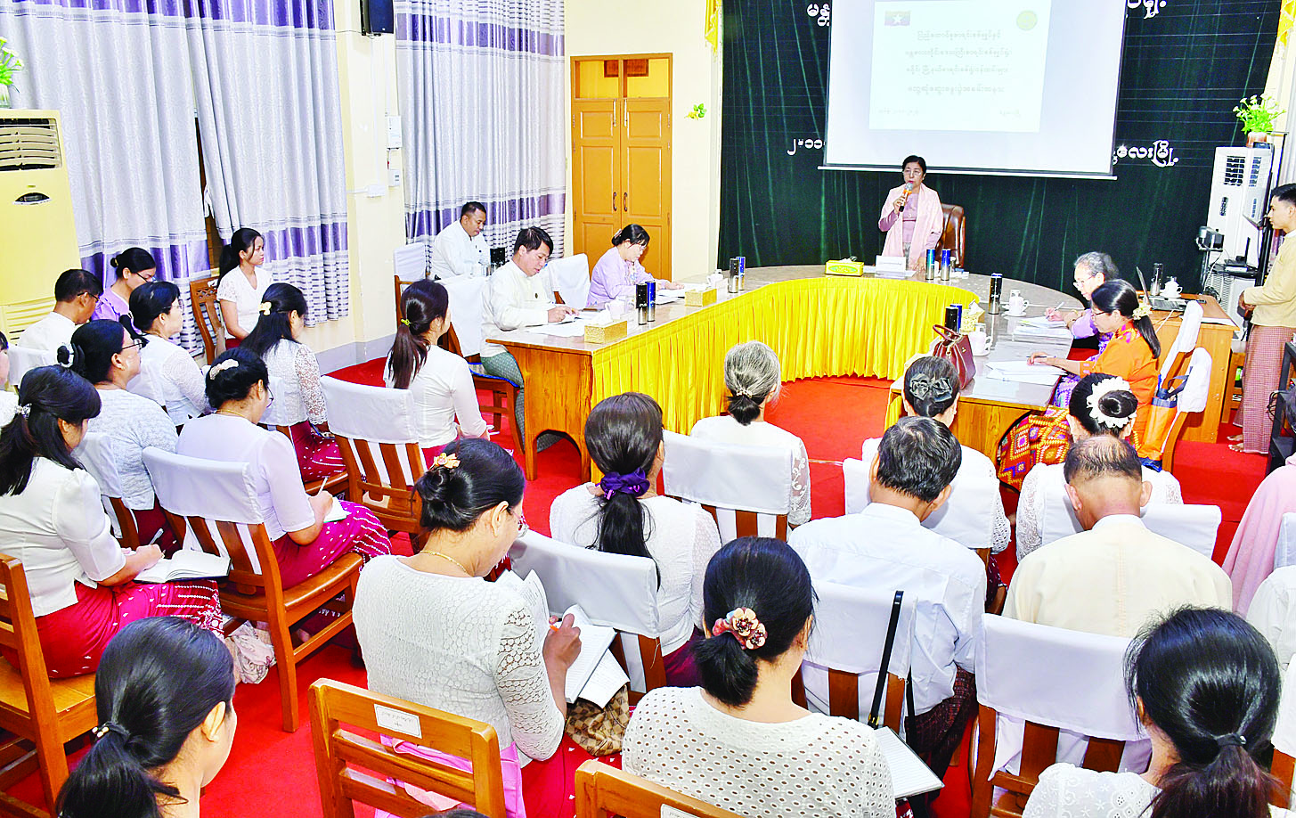 ထို့နောက် မန္တလေးတိုင်းဒေသကြီး စာရင်းစစ်ချုပ်ရုံးမှ တာဝန်ရှိသူများက ဝန်ထမ်းအင်အားနှင့် လုပ်ငန်းဆောင်ရွက်နေမှုအခြေအနေကို ရှင်းလင်းတင်ပြကြရာ ပြည်ထောင်စုစာရင်းစစ်ချုပ်က လိုအပ်သည်များကို ပေါင်းစပ်ညှိနှိုင်းဆောင်ရွက်ပေးသည်။