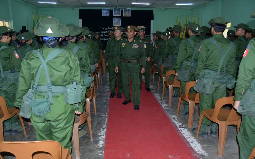 ပဲခူးတိုင်းဒေသကြီး၊ တောင်ငူမြို့ရှိ နယ်မြေခံသင်တန်းကျောင်းတွင် ဖွင့်လှစ်သင်ကြားပေးလျက်ရှိသည့် ၂၀၂၃-၂၀၂၄ ပညာသင်နှစ်အတွက် တက္ကသိုလ်လေ့ကျင့်ရေးတပ်ဖွဲ့ဝင် ဆရာ၊ ဆရာမများနှင့် ကျောင်းသား၊ ကျောင်းသူများ၏ မိုးရာသီစခန်းချလေ့ကျင့်ရေးဆောင်ရွက်နေမှု အခြေအနေများကို ယနေ့နံနက်ပိုင်းတွင် ကာကွယ်ရေးဦးစီးချုပ်ရုံး(ကြည်း)မှ ဒုတိယဗိုလ်ချုပ်ကြီး ဖုန်းမြတ်၊ တောင်ပိုင်းတိုင်းစစ်ဌာနချုပ် တိုင်းမှူး ဗိုလ်ချုပ်ကြည်သိုက်နှင့် တာဝန်ရှိသူများက နယ်မြေခံသင်တန်းကျောင်းခန်းမ၌ သွားရောက်တွေ့ဆုံသည်။