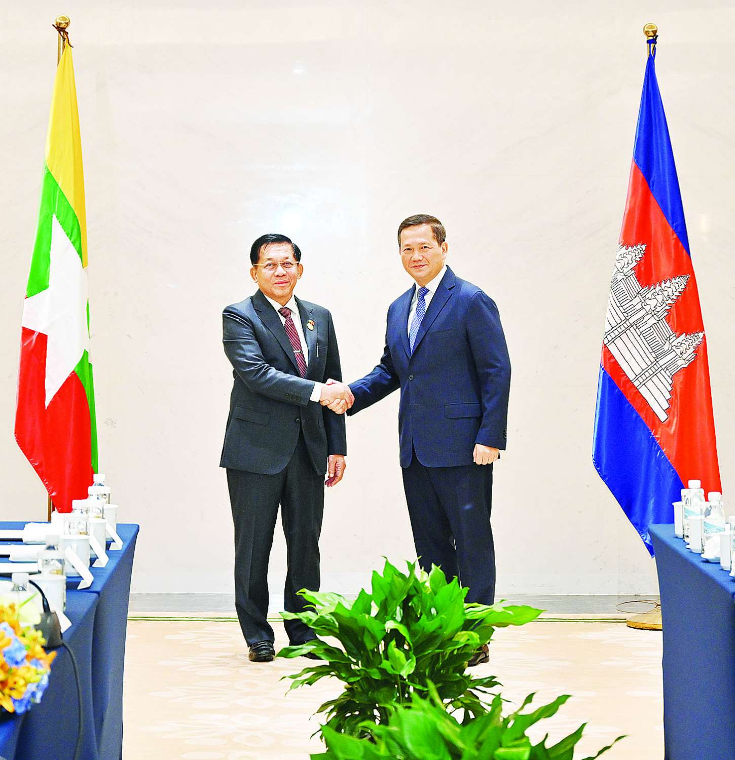 တွေ့ဆုံစဉ် မြန်မာနိုင်ငံနှင့် ကမ္ဘောဒီးယား၊ လာအိုနိုင်ငံတို့အကြား ချစ်ကြည်ရင်းနှီးမှုနှင့် ပူးပေါင်းဆောင်ရွက်မှုများကို တိုးမြှင့်ဆောင်ရွက်နိုင်မည့် အခြေအနေများ၊ မြန်မာနိုင်ငံ၏ နိုင်ငံရေးဖြစ်ပေါ်ပြောင်းလဲမှု အခြေအနေများနှင့် လက်ရှိပကတိအခြေအနေများ၊ လွတ်လပ်၍တရားမျှတသည့် ပါတီစုံဒီမိုကရေစီအထွေထွေရွေးကောက်ပွဲတစ်ရပ် ကျင်းပနိုင်ရေး ဆောင်ရွက်လျက်ရှိသည့် အခြေအနေများ၊ အာဆီယံအဖွဲ့အတွင်း မြန်မာနိုင်ငံအနေဖြင့် အကောင်းဆုံးပူးပေါင်းဆောင်ရွက်လျက်ရှိမှုအခြေအနေများ၊ အာဆီယံအစည်းအဝေးများတွင် မြန်မာနိုင်ငံမှ ပါဝင်နိုင်မှုအခြေအနေများ၊ မြန်မာနိုင်ငံ၌ဖြစ်ပေါ်နေသည့် အခြေအနေများကို ငြိမ်းချမ်းစွာ ဖြေရှင်းနိုင်ရန် လိုအပ်သည့် အခြေအနေများနှင့် ကမ္ဘောဒီးယားနိုင်ငံနှင့် လာအိုနိုင်ငံတို့မှလည်း အတတ်နိုင်ဆုံးကူညီဆောင်ရွက်ပေးသွားမည်ဖြစ်သည့် အခြေအနေများ၊ မြန်မာနိုင်ငံနှင့် ကမ္ဘောဒီးယား၊ လာအိုနိုင်ငံတို့အကြား ချစ်ကြည်ရင်းနှီးမှုနှင့် သံတမန်ဆက်ဆံရေးဆိုင်ရာကိစ္စရပ်များ၊ ချစ်ကြည်ရေးခရီးများ အပြန်အလှန်လည်ပတ်ရေးဆိုင်ရာ ကိစ္စရပ်များ၊ နှစ်နိုင်ငံအကြား ကုန်သွယ်ရေးနှင့် ရင်းနှီးမြှုပ်နှံမှုကဏ္ဍ၊ ခရီးသွားကဏ္ဍ၊ လူမှုရေးကဏ္ဍနှင့် ယဉ်ကျေးမှုကဏ္ဍများ မြှင့်တင်ရေးဆိုင်ရာကိစ္စရပ်များနှင့် အခြားကဏ္ဍများတွင် ပူးပေါင်းဆောင်ရွက်မှု တိုးမြှင့်ရေးဆိုင်ရာကိစ္စရပ်များ စပ်လျဉ်း၍ ရင်းနှီးပွင့်လင်းစွာ အမြင်ချင်းဖလှယ်ဆွေးနွေးကြသည်။