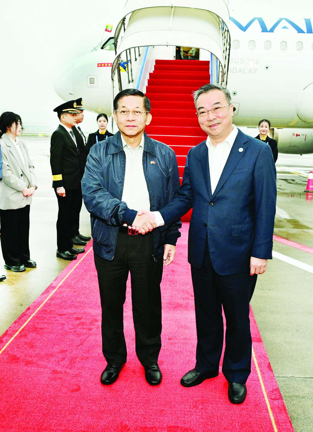 တရုတ်ပြည်သူ့သမ္မတနိုင်ငံ၊ ကူမင်းမြို့၌ ကျင်းပခဲ့သည့် အဋ္ဌမအကြိမ်မြောက် မဟာမဲခေါင်ဒေသခွဲ ထိပ်သီးအစည်းအဝေး 8th Greater Mekong Subregion(GMS) အပါအဝင် ထိပ်သီးအစည်းအဝေးများသို့ တက်ရောက်ခဲ့သော နိုင်ငံတော်စီမံအုပ်ချုပ်ရေးကောင်စီဥက္ကဋ္ဌ နိုင်ငံတော်ဝန်ကြီးချုပ် ဗိုလ်ချုပ်မှူးကြီးမင်းအောင်လှိုင် ဦးဆောင်သည့် မြန်မာအဆင့်မြင့်ကိုယ်စားလှယ်အဖွဲ့သည် နိုဝင်ဘာလ ၉ ရက် နံနက်ပိုင်းတွင် ချုံချင့်မြို့၊ ကျန်းပေအပြည်ပြည်ဆိုင်ရာလေဆိပ်မှ ရှန်းကျန့်မြို့သို့ထွက်ခွာရာ ချုံချင့်မြို့၊ ဒုတိယမြို့တော်ဝန် Mr. Shang Kui နှင့် အဖွဲ့ဝင်များ၊ ချုံချင့်မြို့ရှိ မြန်မာကောင်စစ်ဝန်ချုပ်ရုံးမှ ကောင်စစ်ဝန်ချုပ် ဦးကျော်ဇေယျာလင်းနှင့် တာဝန်ရှိသူများက လေဆိပ်၌ ပို့ဆောင်နှုတ်ဆက်ကြသည်။