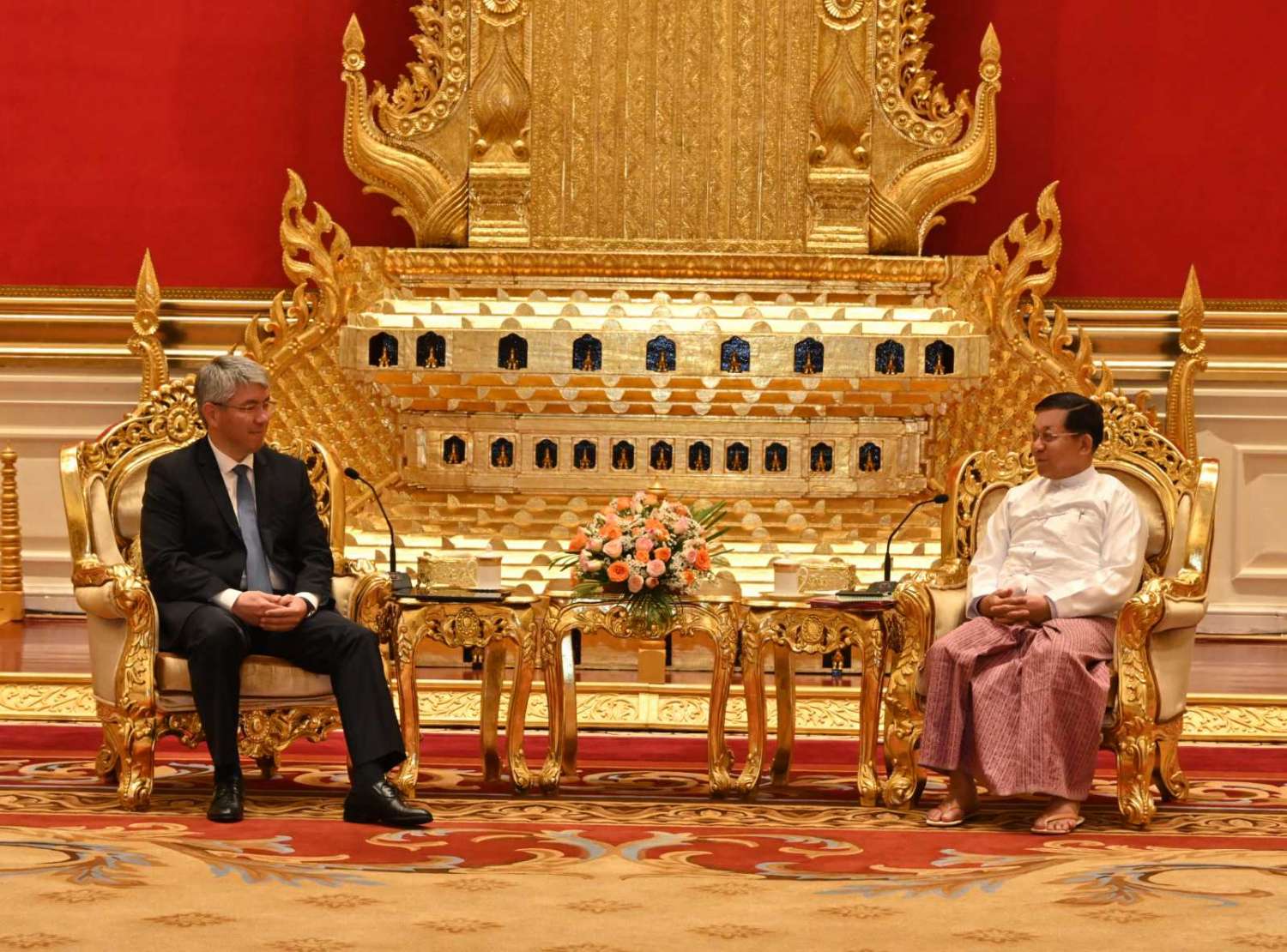 နိုင်ငံတော်စီမံအုပ်ချုပ်ရေးကောင်စီဥက္ကဋ္ဌ နိုင်ငံတော်ဝန်ကြီးချုပ် ဗိုလ်ချုပ်မှူးကြီး မင်းအောင်လှိုင်သည် ရုရှားဖက်ဒရေးရှင်းနိုင်ငံ၊ ဘူရားတီးရားပြည်နယ်အကြီးအကဲ၊ ဘူရားတီးရားပြည်နယ်အစိုးရဥက္ကဋ္ဌ H.E. Mr. Tsydenov Alekesei Sambuevich ဦးဆောင်သော ကိုယ်စားလှယ်အဖွဲ့အား ယနေ့နံနက်ပိုင်းတွင် နေပြည်တော်ရှိ နိုင်ငံတော်စီမံအုပ်ချုပ်ရေးကောင်စီ ဥက္ကဋ္ဌရုံး သံတမန်ဆောင်ဧည့်ခန်းမ၌ လက်ခံ တွေ့ဆုံသည်။