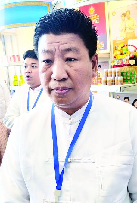 နိုင်ငံတော်အဆင့် ပွဲကြီးမှာ ပထမဆုံးအနေနဲ့ မန္တလေးတိုင်းဒေသကြီးကနေ လာရောက်ပြသခြင်းဖြစ်ပါတယ်။ လာမယ့်နှစ်တွေ မှာလည်း လာရောက်ပြသခွင့်ရရင် ပြသချင်ပါတယ်။ ကျွန်တော့်အနေ နဲ့ ညီလာခံနဲ့ နှီးနှောဖလှယ်ပွဲမှာ သူနှိုင်းထက်တိုင်းရင်းဆေးဝါးထုတ်လုပ်ရေးကနေ ထုတ်လုပ်တဲ့ ဆေးအမျိုးအစား သုံးမျိုး လာရောက်ပြသတာဖြစ်ပါတယ်။ ဒီဆေးတွေကတော့ သိမ်းကမ္ဘာချောင်းဆိုး၊ ရင်ကျပ်ချွဲသလိပ်ပျော် လျက်ဆား၊ သိမ်းကမ္ဘာဝမ်းမှန် ဆေးနဲ့ သိမ်းကမ္ဘာသွေးတိုးကျ ဆေးတို့ဖြစ်ပါတယ်။ ဆေးဆိုင်ဖွင့်ပြီး တိုင်းရင်းဆေးတွေ ရောင်းချလာတာ နှစ် ၂၀ ရှိပါပြီ။ တိုင်းရင်း ဆေးဝါး ထုတ်လုပ်ရေးပိုင်းကိုတော့ ခုမှစတင်ဝင်ရောက်လာတာ တစ်နှစ်ကျော်ပဲ ရှိပါသေးတယ်။ တိုင်းရင်းဆေးတွေကို ငယ်စဉ်ကတည်းက ယုံယုံကြည်ကြည်နဲ့ သုံးစွဲခဲ့ပြီး ကိုယ်တိုင်ထုတ်လုပ်သူ အနေနဲ့ ဒီပွဲမှာ ပါဝင်ခွင့်ရတဲ့အတွက် ဝမ်းသာဂုဏ်ယူမိပါတယ်။ တိုင်းရင်းဆေးဝါး သုံးစွဲသူတွေ အနေနဲ့ မြန်မာ့တိုင်းရင်းဆေးဝါးတွေဟာ တိုင်းရင်းဆေးစစ်စစ်နဲ့ ဖော်စပ်ထားတဲ့အတွက် အကျိုးအာနိသင်ရှိပြီး ဆိုးကျိုးမရှိပါဘူး။