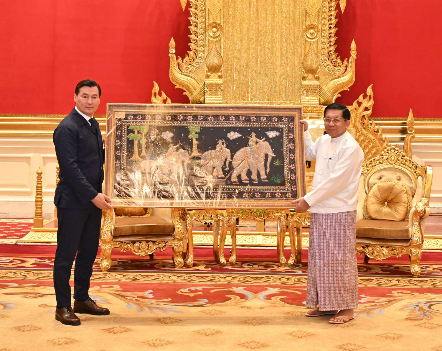 တွေ့ဆုံပွဲအပြီးတွင် နိုင်ငံတော်စီမံအုပ်ချုပ်ရေးကောင်စီဥက္ကဋ္ဌ နိုင်ငံတော်ဝန်ကြီးချုပ်နှင့် ရုရှားဖက်ဒရေးရှင်းနိုင်ငံ၊ ကာလ်မီးကီယာပြည်နယ်အကြီးအကဲတို့သည် အမှတ်တရလက်ဆောင်ပစ္စည်းများ အပြန်အလှန်ပေးအပ်ကြပြီး မှတ်တမ်းတင်ဓာတ်ပုံရိုက်ခဲ့ကြကြောင်း သတင်းရရှိသည်။