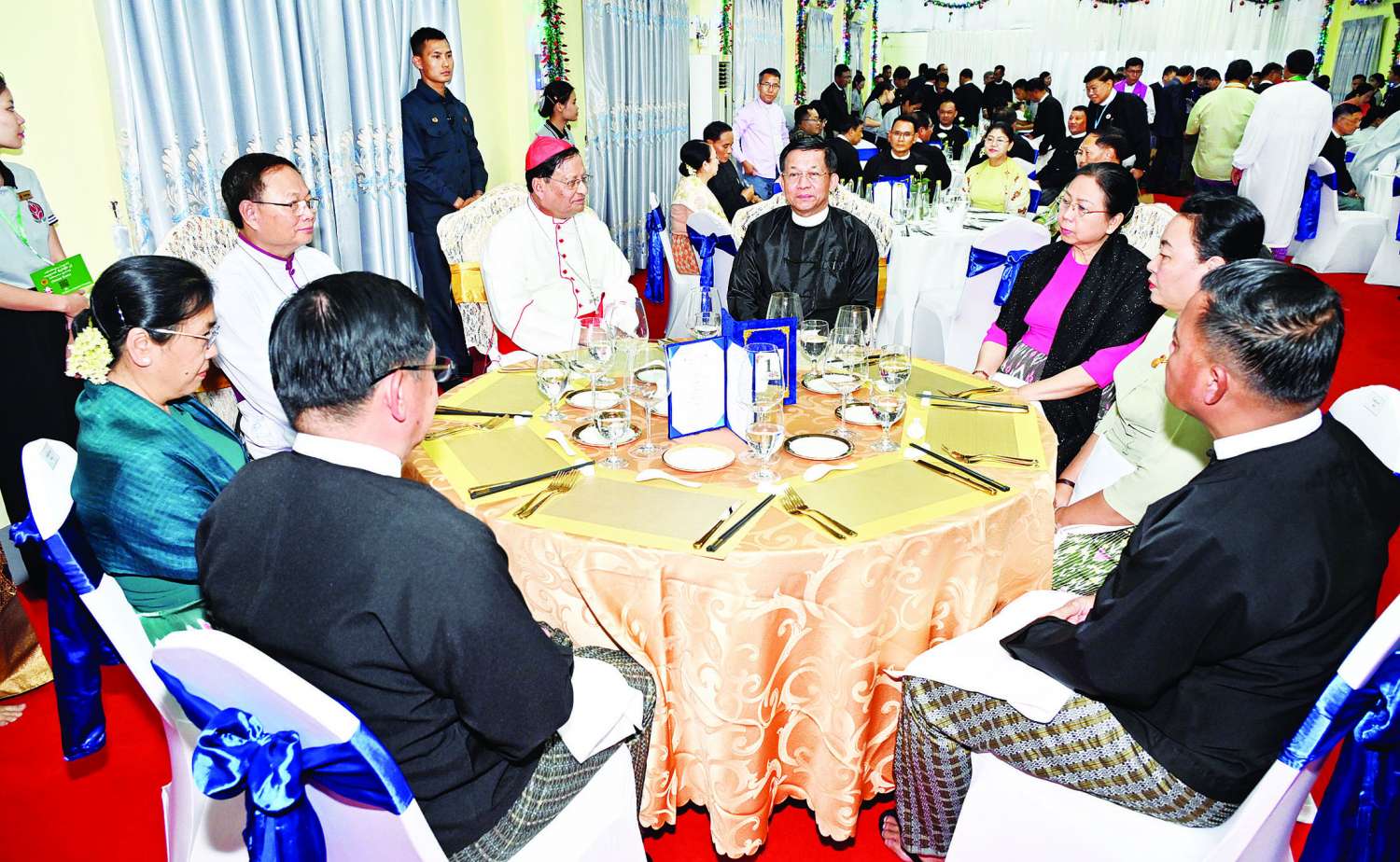 ၎င်းနောက် နိုင်ငံတော်စီမံအုပ်ချုပ်ရေးကောင်စီဥက္ကဋ္ဌ နိုင်ငံတော်ဝန်ကြီးချုပ်နှင့် ဇနီး၊ အဖွဲ့ဝင်များ၊ တက်ရောက်လာကြသည့် ဧည့်ပရိသတ်များသည် မြန်မာနိုင်ငံခရစ်ယာန်အသင်းတော်ပေါင်းစုံအဖွဲ့ချုပ်ကြီးများမှ တည်ခင်းဧည့်ခံသည့် မိတ်သဟာယညစာကို အတူတကွသုံးဆောင်ခဲ့ကြကြောင်း သတင်းရရှိသည်။