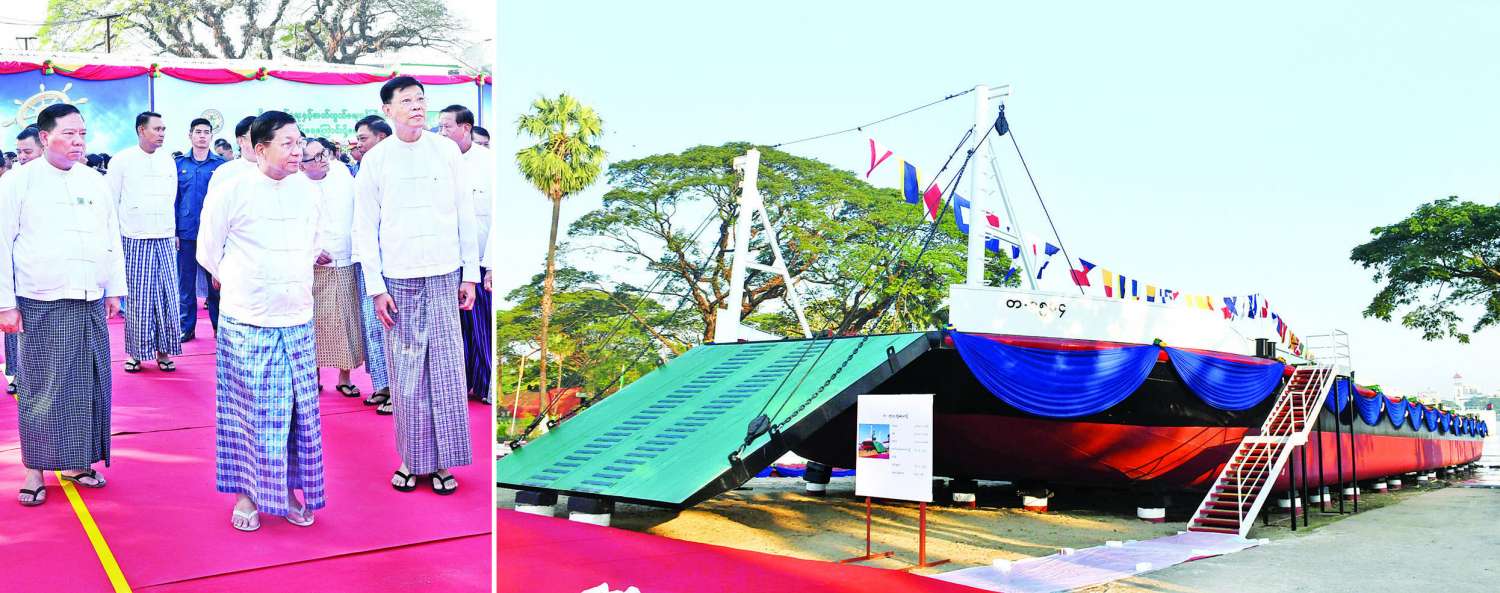 ထို့နောက် နိုင်ငံတော်စီမံအုပ်ချုပ်ရေးကောင်စီဥက္ကဋ္ဌ နိုင်ငံတော်ဝန်ကြီးချုပ်နှင့် အဖွဲ့ဝင်များသည် သမိုင်းဝင် ဒလသင်္ဘောကျင်း လုပ်ငန်းခွင်အတွင်း အကြီးစားမွမ်းမံ ပြင်ဆင်လျက်ရှိသော ရေယာဉ်ကြီးများ၏ ပြင်ဆင်နေမှုအခြေအနေများ၊ ကမ်းရိုးတန်းသွား ကုန်တင်ရေယာဉ်တည်ဆောက်နိုင်ရေးအတွက် ရေယာဉ်ပုံစံငယ် စမ်းသပ်မှုလုပ်ငန်းစဉ် ရှင်းလင်းမှုများကို လှည့်လည်ကြည့်ရှုစစ်ဆေးပြီး တာဝန်ရှိသူများ၏ တင်ပြချက်များအပေါ် နိုင်ငံတော်စီမံအုပ်ချုပ်ရေးကောင်စီဥက္ကဋ္ဌ နိုင်ငံတော်ဝန်ကြီးချုပ်က လိုအပ်သည်များ လမ်းညွှန်မှာကြားသည်။