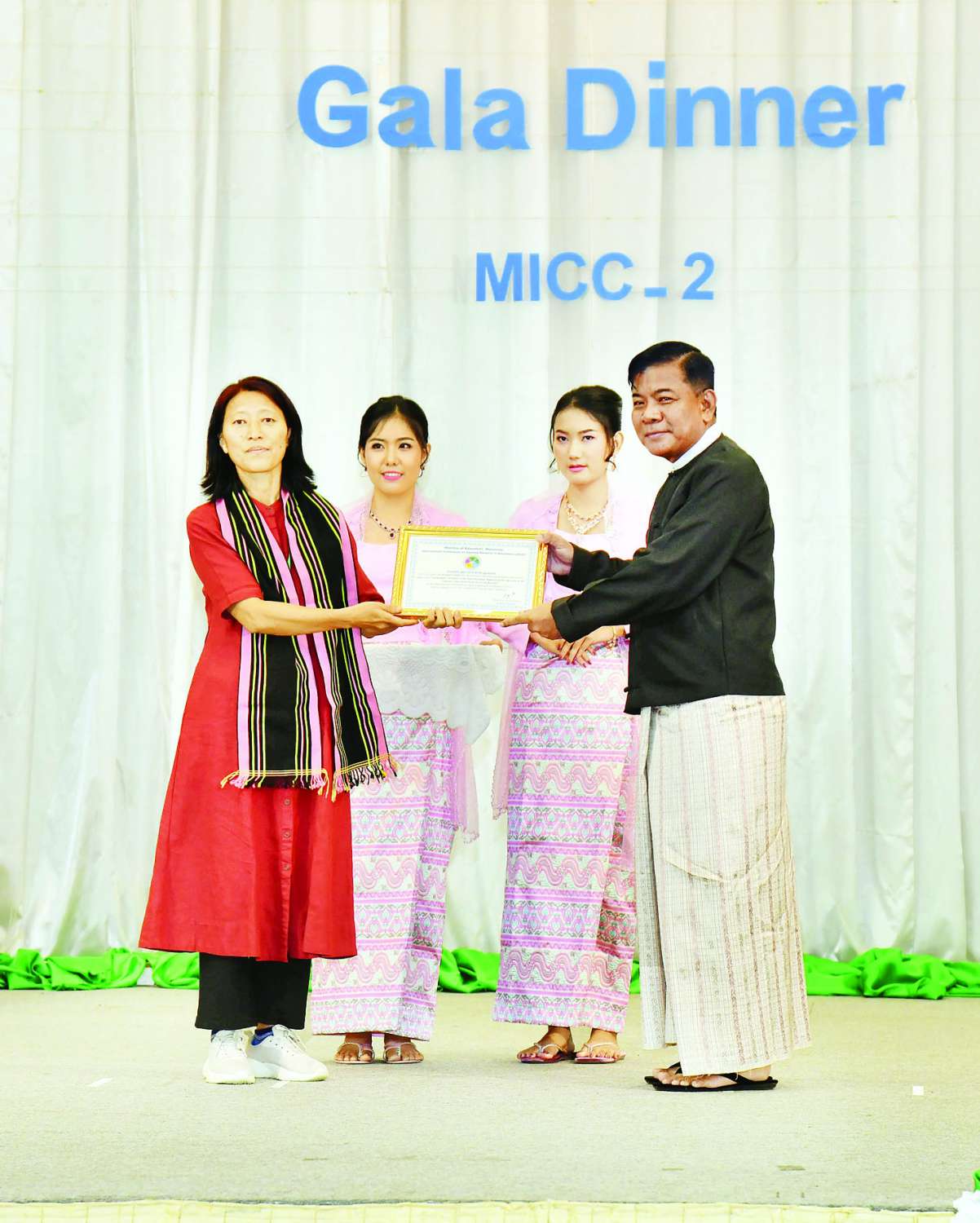 ဂုဏ်ပြုညစာစားပွဲအပြီးတွင် နိုင်ငံတော်စီမံအုပ်ချုပ်ရေးကောင်စီဒုတိယဥက္ကဋ္ဌ ဒုတိယဝန်ကြီးချုပ်သည် ဖျော်ဖြေတင်ဆက်ခဲ့ကြသူများကို ဂုဏ်ပြုပန်းခြင်းနှင့် ဂုဏ်ပြုချီးမြှင့်ငွေများပေးအပ်ပြီး အခမ်းအနားသို့ တက်ရောက်လာကြသူများအား ရင်းရင်းနှီးနှီးနှုတ်ဆက်ခဲ့ကြောင်း သတင်းရရှိသည်။