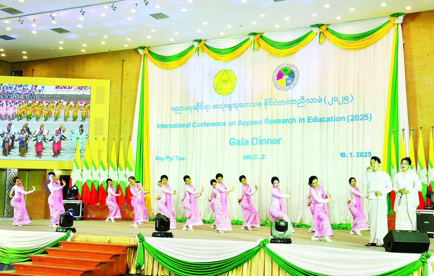 ပညာရေးဆိုင်ရာအသုံးချသုတေသန နိုင်ငံတကာညီလာခံ (၂၀၂၅) ဂုဏ်ပြုညစာစားပွဲအခမ်းအနားကို ယနေ့ညပိုင်းတွင် နေပြည်တော်ရှိ မြန်မာအပြည်ပြည်ဆိုင်ရာကွန်ဗင်းရှင်း ဗဟိုဌာန-၂ (MICC-II) ၌ကျင်းပရာ နိုင်ငံတော်စီမံအုပ်ချုပ်ရေးကောင်စီဒုတိယဥက္ကဋ္ဌ ဒုတိယဝန်ကြီးချုပ် ဒုတိယဗိုလ်ချုပ်မှူးကြီးစိုးဝင်း တက်ရောက်ချီးမြှင့်သည်။
