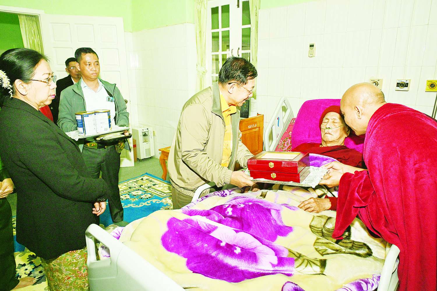 ယင်းနောက် နိုင်ငံတော်စီမံအုပ်ချုပ်ရေးကောင်စီဥက္ကဋ္ဌ နိုင်ငံတော်ဝန်ကြီးချုပ်နှင့် ဇနီးတို့က ဆရာတော်ကြီးအား လှူဖွယ်ပစ္စည်းများ၊ ဆေးပစ္စည်းများ၊ အာဟာရဖြည့်ငှက်သိုက်နှင့် စားသောက်ဖွယ်ရာများ၊ နဝကမ္မအလှူတော်ငွေများကို ဆက်ကပ်လှူဒါန်းပြီး ဖူးမြော်ကြည်ညိုခဲ့ကြောင်း သတင်းရရှိသည်။