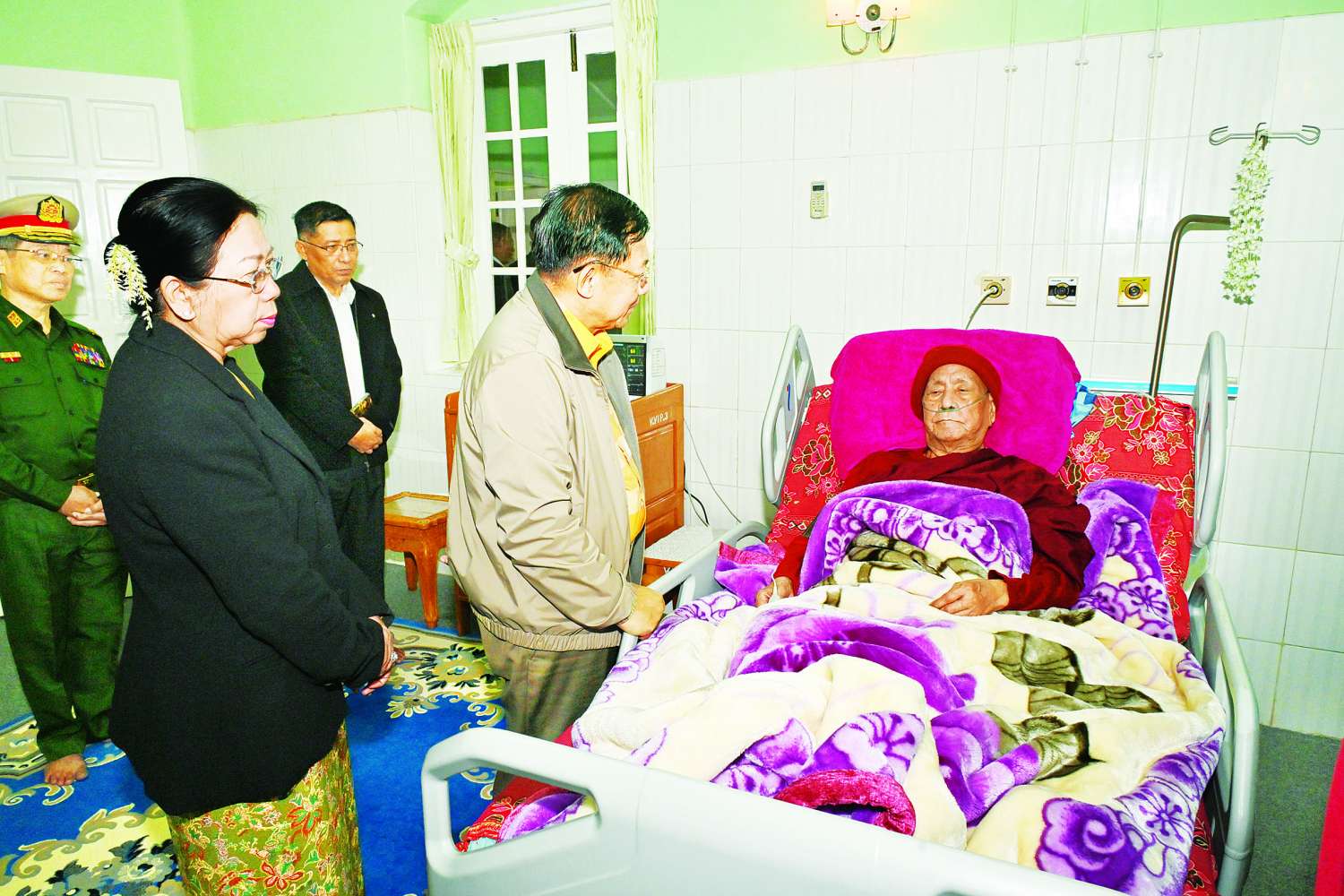 မန္တလေးတိုင်းဒေသကြီး ချမ်းအေးသာဇံမြို့နယ် မဟာဝိဇိတာရုံပရိယတ္တိစာသင်တိုက်ကြီး၏ ဦးစီးပဓာနနာယက၊ နိုင်ငံတော်ဩဝါဒါစရိယ အဘိဓဇမဟာရဋ္ဌဂုရု အဘိဓဇအဂ္ဂမဟာသဒ္ဓမ္မဇောတိက ဘဒ္ဒန္တဝိစာရိန္ဒာဘိဝံသ၊ သက်တော် ၉၇ နှစ်၊ ဝါတော် ၇၇ ဝါရှိ သက်တော်ရှည် ဆရာတော်ကြီးသည် ပြင်ဦးလွင်မြို့ရှိ တပ်မတော်ဆေးရုံ၌ ကျန်းမာရေးစောင့်ရှောက်မှုခံယူလျက်ရှိရာ ဆရာတော်ကြီးအား ကျန်းမာရေးစောင့်ရှောက်မှုပေးထားသည့် အခြေအနေများကို နိုင်ငံတော်စီမံအုပ်ချုပ်ရေးကောင်စီဥက္ကဋ္ဌ နိုင်ငံတော်ဝန်ကြီးချုပ် ဗိုလ်ချုပ်မှူးကြီး မင်းအောင်လှိုင်သည် ဇနီး ဒေါ်ကြူကြူလှနှင့် တာဝန်ရှိသူများလိုက်ပါ၍ ယနေ့နံနက်ပိုင်းတွင် သွားရောက်ကြည့်ရှုသည်။