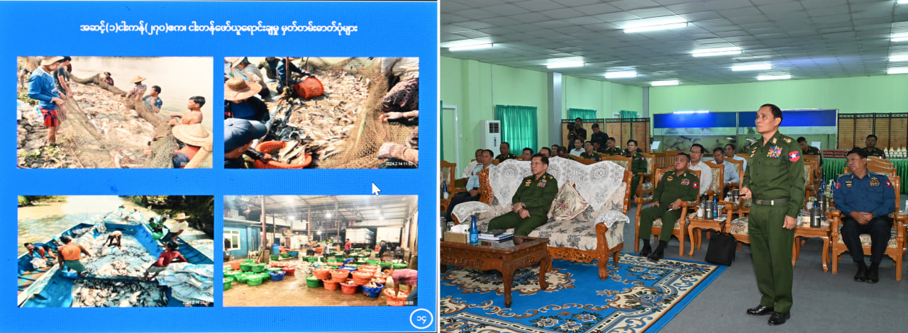 ယင်းနောက် နိုင်ငံတော်စီမံအုပ်ချုပ်ရေးကောင်စီဥက္ကဋ္ဌ တပ်မတော်ကာကွယ်ရေးဦးစီးချုပ်နှင့် အဖွဲ့ဝင်များသည် ကျောက်တန်းမြို့နယ်၊ ရန်ကုန်မြစ်နှင့် မှော်ဝန်းချောင်းကြားနေရာရှိ မြန်မာစီးပွားရေးကော်ပိုရေးရှင်း၊ သီလဝါဘက်စုံစိုက်ပျိုးမွေးမြူရေးဇုန် လုပ်ငန်းအကောင်အထည်ဖော်ဆောင်ရွက်နေမှုအခြေအနေများကို သွားရောက်ကြည့်ရှု စစ်ဆေးသည်။