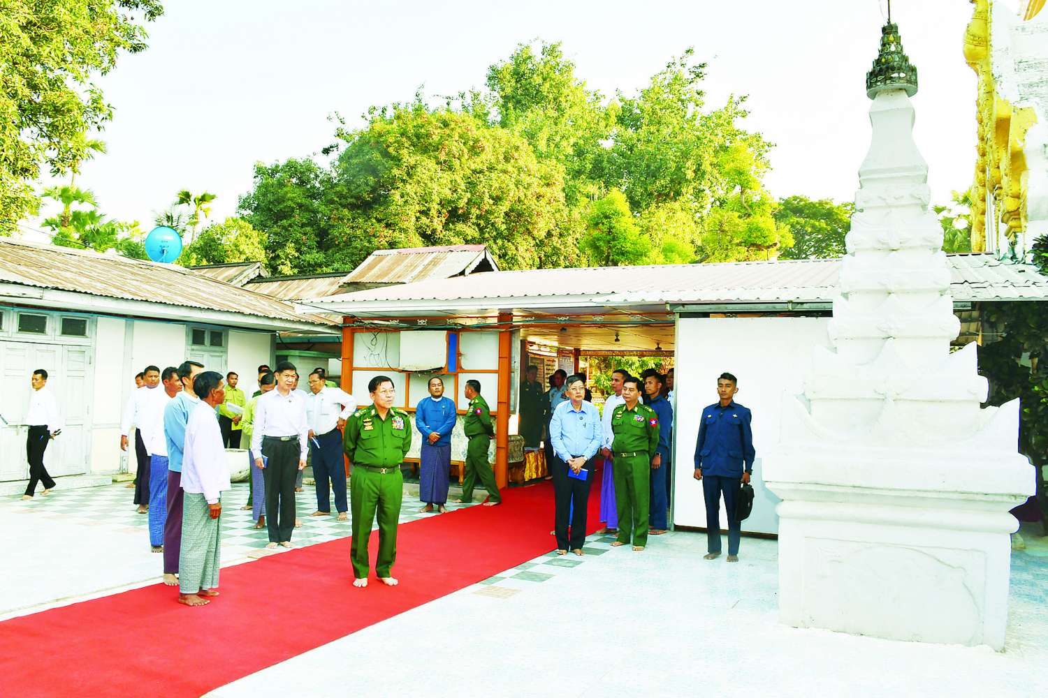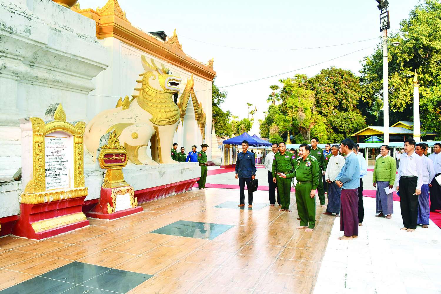 နိုင်ငံတော်စီမံအုပ်ချုပ်ရေးကောင်စီဥက္ကဋ္ဌ နိုင်ငံတော်ဝန်ကြီးချုပ် ဗိုလ်ချုပ်မှူးကြီး မင်းအောင်လှိုင်သည် ယနေ့မွန်းလွဲပိုင်းတွင် ဇနီး ဒေါ်ကြူကြူလှ၊ ကောင်စီတွဲဖက်အတွင်းရေးမှူး ဗိုလ်ချုပ်ကြီး ရဲဝင်းဦး၊ ကောင်စီအဖွဲ့ဝင်များ၊ ပြည်ထောင်စုဝန်ကြီးများနှင့် ဇနီးများ၊ ကာကွယ်ရေးဦးစီးချုပ်ရုံးမှ အဆင့်မြင့်တပ်မတော်အရာရှိကြီးများနှင့် ဇနီးများ၊ မန္တလေးတိုင်းဒေသကြီးဝန်ကြီးချုပ်၊ အလယ်ပိုင်းတိုင်းစစ်ဌာနချုပ် တိုင်းမှူးနှင့် တာဝန်ရှိသူများ လိုက်ပါ၍ မန္တလေးတိုင်းဒေသကြီး အင်းဝမြို့ဟောင်းရှိ လောကသရဖူဘုရားကြီးနှင့် မောင်အိုအုတ်လမ်း ထိန်းသိမ်းထားရှိမှုအခြေအနေများကို သွားရောက်ကြည့်ရှုစစ်ဆေးသည်။