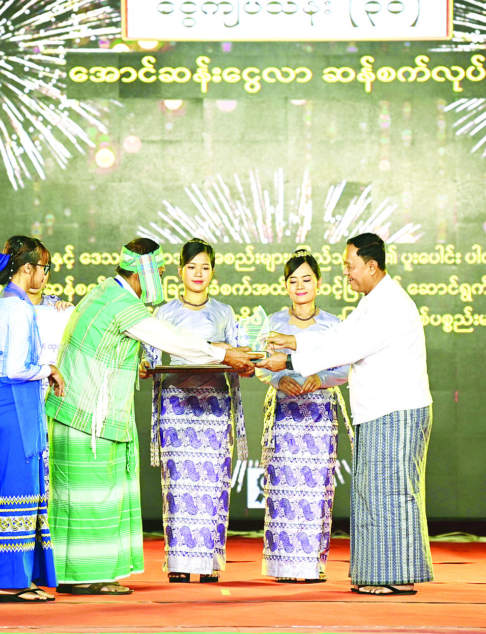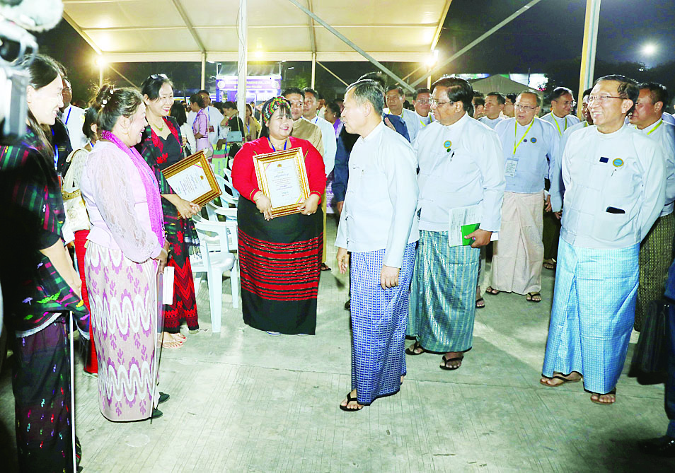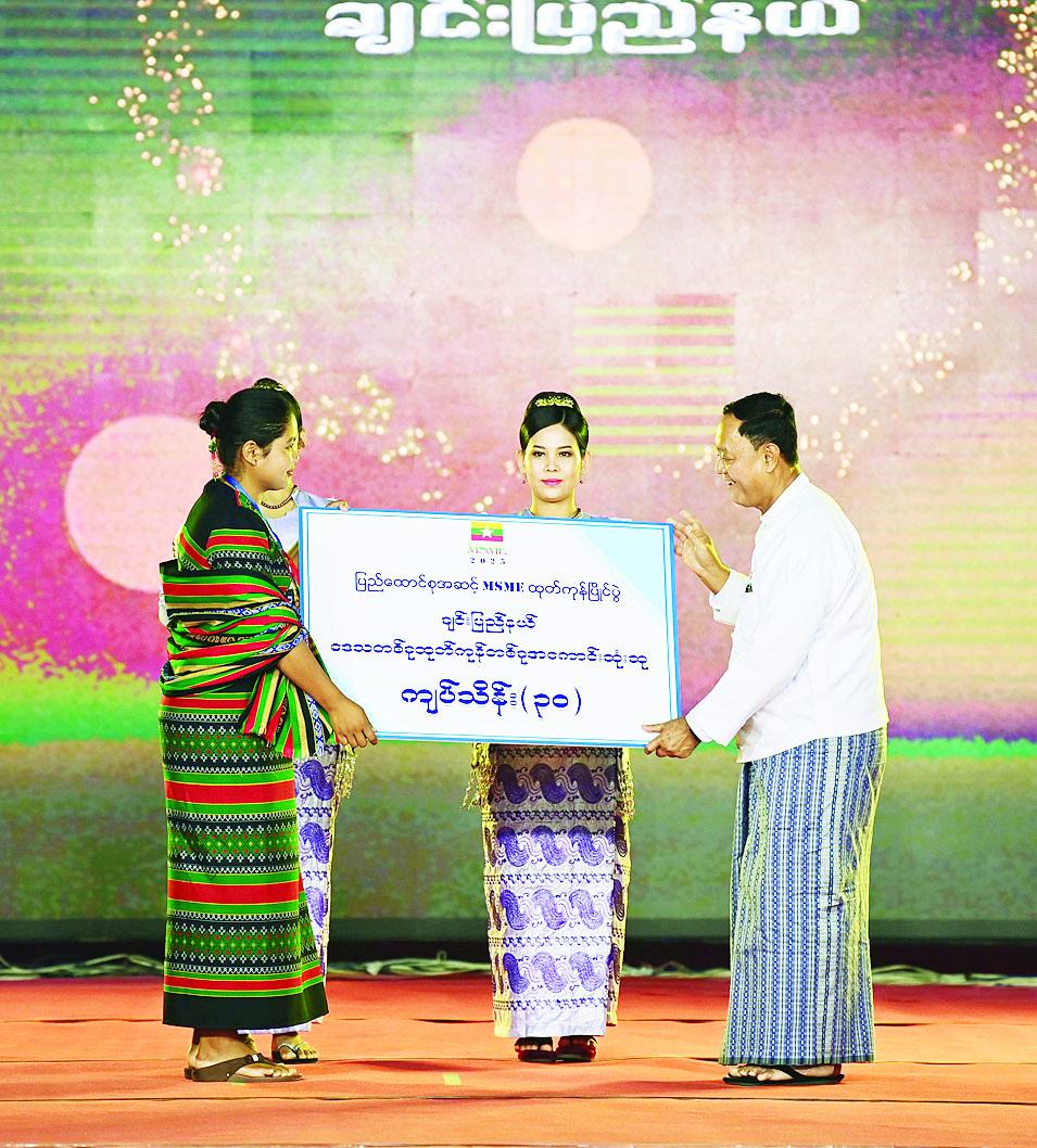 ဦးစွာ နေပြည်တော်ကောင်စီဥက္ကဋ္ဌ ဦးသန်းထွန်းဦးက အသေးစားစက်မှုလက်မှုလုပ်ငန်း (စားသောက်ကုန်၊ လူသုံးကုန်၊ ရက်ကန်းထည်၊ လက်မှုထည်) စံပြထုတ်ကုန် အထူးဆုရရှိသူ (၁၂) ဦးတို့အားလည်းကောင်း၊ သိပ္ပံနှင့်နည်းပညာဝန်ကြီးဌာန ပြည်ထောင်စုဝန်ကြီး ဒေါက်တာမျိုးသိန်းကျော်က ကုန်ထုတ်သမဝါယမအသင်း စွမ်းဆောင်ရည်အထူးဆုရရှိသူ (၅) ဦးနှင့် အသေးစား (Micro) စီးပွားရေးလုပ်ငန်းများ အထူးဆုရရှိသူ (၅) ဦးတို့အားလည်းကောင်း ဆုများပေးအပ်ချီးမြှင့်ကြသည်။