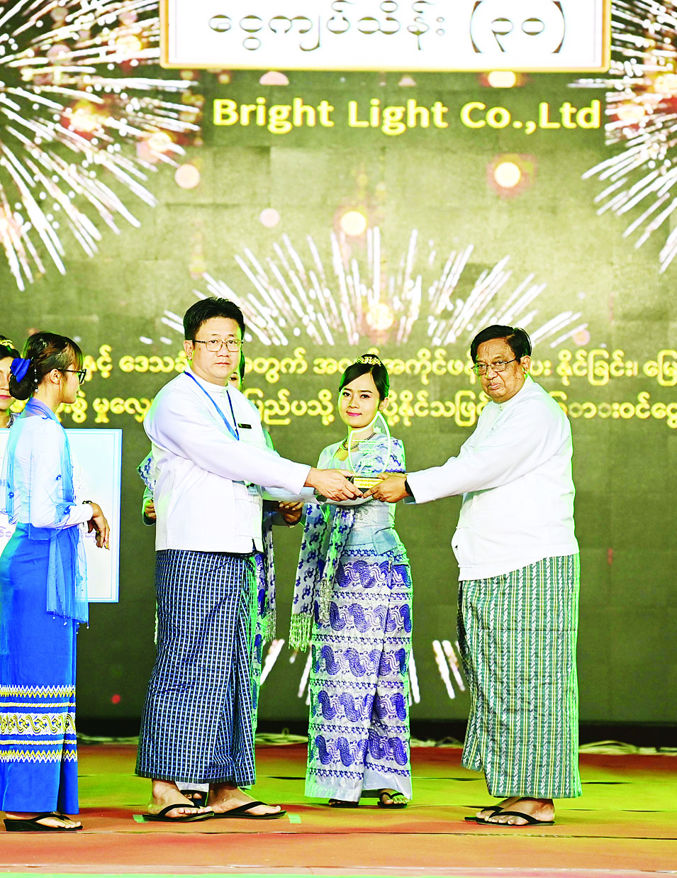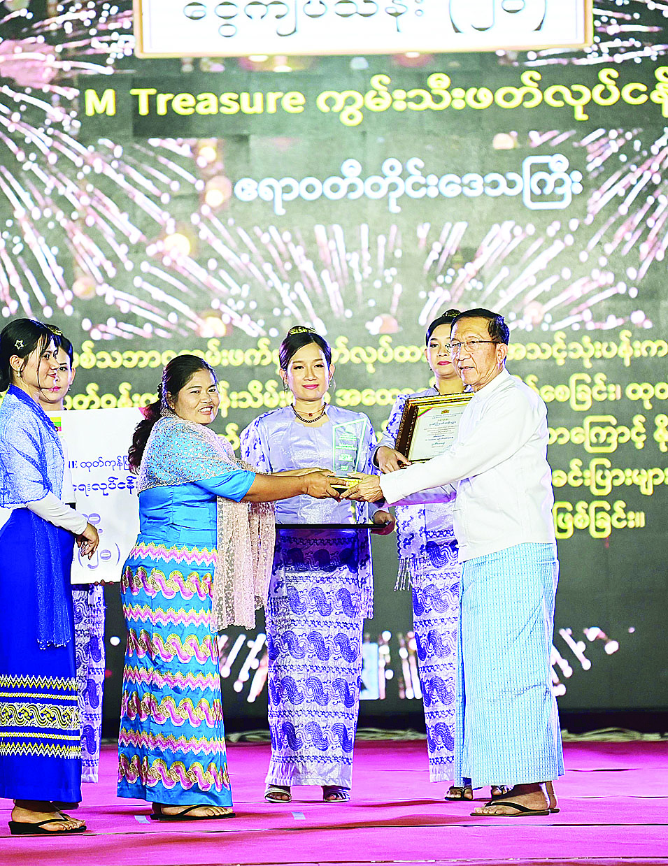ဆက်လက်၍ စီမံကိန်းနှင့်ဘဏ္ဍာရေးဝန်ကြီးဌာန ပြည်ထောင်စုဝန်ကြီး ဦးဝင်းရှိန်က အသေးစား၊ အငယ်စား၊ အလတ်စားစီးပွားရေးလုပ်ငန်းများနှင့် ကုန်ထုတ်သမဝါယမ အသင်းစွမ်းဆောင်ရည် ဒုတိယဆုရရှိကြသူများဖြစ်သည့် အသေးစားထုတ်ကုန်လုပ်ငန်းတွင် ဧရာဝတီတိုင်းဒေသကြီး “M-Treasure” ကွမ်းသီးဖက်ထုတ်ကုန်လုပ်ငန်း မှ ဒေါ်မာလာစန်း၊ အငယ်စားထုတ်ကုန်လုပ်ငန်းတွင် ရန်ကုန်တိုင်းဒေသကြီး “MG Myanmar Gasket" အမျိုးမျိုးထုတ်ကုန်လုပ်ငန်းမှ ဦးဇင်မျိုးထိုက်၊ အလတ်စားစီးပွားရေးလုပ်ငန်းတွင် ပြည်ထောင်စုနယ်မြေနေပြည်တော် “မြန်မာရွှေသစ်သီးဝလံ” ကုမ္ပဏီလီမိတက်မှ ဒေါ်လဲ့လဲ့ဦးနှင့် ကုန်ထုတ်သမဝါယမအသင်းစွမ်းဆောင်ရည်ဆုရရှိသည့် ရန်ကုန်တိုင်းဒေသကြီး၊ “သီရိစန္ဒာ” အထည်ချုပ်နှင့်အထွေထွေရောင်းဝယ်ရေးသမဝါယမအသင်းမှ တာဝန်ရှိသူတို့အား ဂုဏ်ပြုဆုတံဆိပ်၊ ဂုဏ်ပြုမှတ်တမ်းလွှာနှင့် ဂုဏ်ပြုဆုငွေများပေးအပ်ချီးမြှင့်သည်။