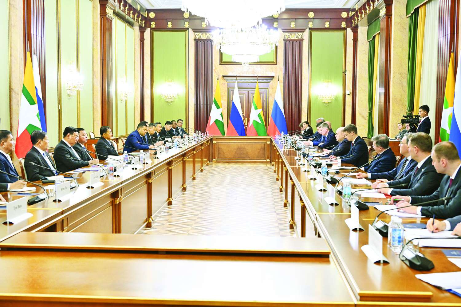 ရုရှားဖက်ဒရေးရှင်းနိုင်ငံ၊ မော်စကိုမြို့သို့ တရားဝင်ချစ်ကြည်ရေးခရီးရောက်ရှိနေသည့် နိုင်ငံတော်စီမံအုပ်ချုပ်ရေးကောင်စီဥက္ကဋ္ဌ နိုင်ငံတော်ဝန်ကြီးချုပ် ဗိုလ်ချုပ်မှူးကြီး မင်းအောင်လှိုင်သည် ယနေ့ဒေသစံတော်ချိန် နေ့လယ်ပိုင်းတွင် ရုရှားဖက်ဒရေးရှင်းနိုင်ငံ အစိုးရအဖွဲ့ဝန်ကြီးချုပ် H.E. Mikhail Vladimirovich Mishustim နှင့် ရုရှားအစိုးရအဖွဲ့ အိမ်တော်အစည်းအဝေးခန်း၌ တွေ့ဆုံဆွေးနွေးသည်။