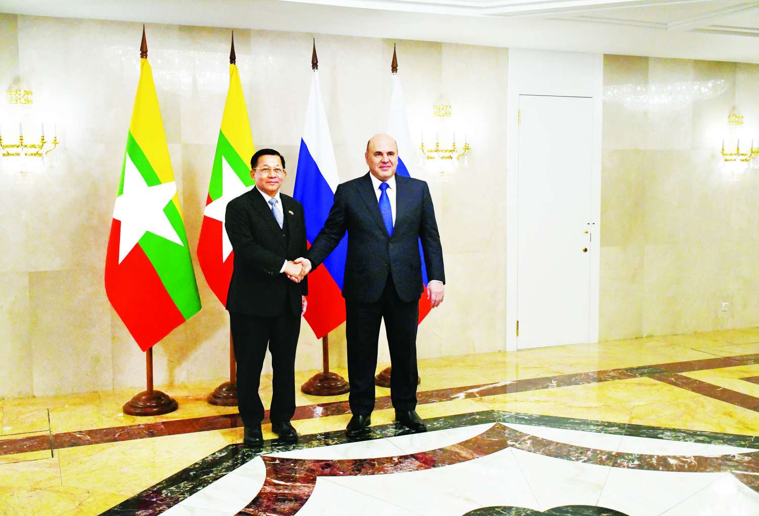 နိုင်ငံတော်စီမံအုပ်ချုပ်ရေးကောင်စီဥက္ကဋ္ဌ နိုင်ငံတော်ဝန်ကြီးချုပ် ဗိုလ်ချုပ်မှူးကြီး မင်းအောင်လှိုင် ရုရှားဖက်ဒရေးရှင်းနိုင်ငံဝန်ကြီးချုပ် H.E. Mikhail Vladimirovich Mishustim နှင့် တွေ့ဆုံဆွေးနွေး