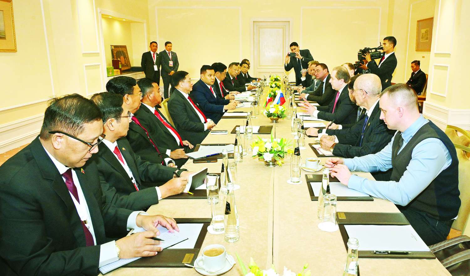 ထိုသို့တွေ့ဆုံရာတွင် ရုရှား-မြန်မာစီးပွားရေးကော်မရှင်၏ လုပ်ငန်းဆောင်ရွက်မှုအခြေအနေများ မြန်မာနိုင်ငံနှင့် ရုရှားနိုင်ငံတို့အကြား စိုက်ပျိုးရေးကဏ္ဍ ပူးပေါင်းဆောင်ရွက်မှုများ ဖွံ့ဖြိုးတိုးတက်ရေးကိစ္စရပ်များ၊ မြန်မာနိုင်ငံတွင်စိုက်ပျိုးဖြစ်ထွန်းသည့် ဖရဲသီး၊ သရက်သီးစသည့် အသီးအနှံများအား ရုရှားနိုင်ငံသို့ တင်ပို့နိုင်သည့်အခြေအနေများ၊ စွန့်ပစ်အမှိုက်များအား Recycle ဖြင့် ပြန်လည်အသုံးပြုနိုင်ရေးကိစ္စရပ်များ၊ အာကာသနှင့် နည်းပညာပူးပေါင်းဆောင်ရွက်ရေးဆိုင်ရာ ကိစ္စရပ်များနှင့် အခြားနှစ်နိုင်ငံအကြား စီးပွားရေးပူးပေါင်းဆောင်ရွက်မှုများနှင့်ပတ်သက်၍ ရင်းရင်းနှီးနှီးဆွေးနွေးခဲ့ကြသည်။
