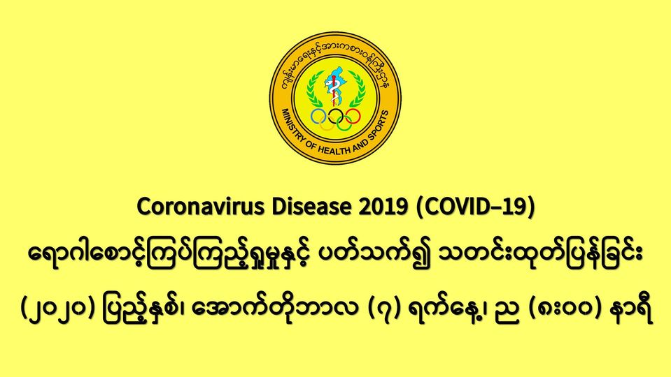 (၆-၁၀-၂၀၂၀) ရက်နေ့၊ ည (၈:၀၀)နာရီမှ (၇-၁၀-၂၀၂၀) ရက်နေ့၊ ည (၈:၀၀)နာရီအတွင်း ဓာတ်ခွဲနမူနာ စုစုပေါင်း (၁၂,၃၂၂) ခုအား စစ်ဆေးပြီးစီးခဲ့ရာ COVID-19 ရောဂါ ဓာတ်ခွဲ အတည်ပြု လူနာသစ် (၁,၄၀၀)ဦး တွေ့ရှိရပါသည်။