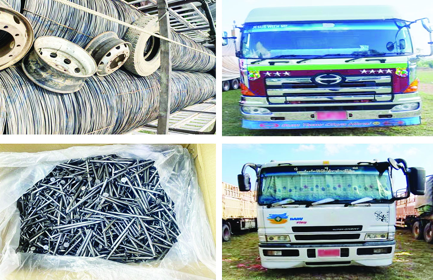အလားတူ ရန်ကုန်တိုင်းဒေသကြီး တရားမဝင်ကုန်သွယ်မှုတိုက်ဖျက်ရေးအထူးအဖွဲ့၏ စီမံခန့်ခွဲမှုဖြင့် တာဝန်ကျပူးပေါင်းအဖွဲ့များက စစ်ဆေးမှုများဆောင်ရွက်ခဲ့ရာ ဧပြီ ၂၈ ရက်တွင် သန်လျင်မြို့နယ်၌ လိုင်စင်မဲ့မော်တော်ယာဉ်နှစ်စီး (ခန့်မှန်းတန်ဖိုးငွေကျပ် ၁၂၀၀၀၀၀၀) ကို ပို့ကုန်သွင်းကုန်ဥပဒေအရလည်းကောင်း၊ ဧပြီ ၃၀ ရက်တွင် ရန်ကုန်- မန္တလေးအမြန်လမ်းမကြီး မိုင်တိုင်အမှတ် (၀) မိုင်နှင့် ၂၆/၄ မိုင်ကြား၌ မော်တော်ယာဉ်ငါးစီးပေါ်မှ တရားဝင်စာရွက်စာတမ်း အထောက်အထားတင်ပြနိုင်ခြင်းမရှိသည့် စားသောက်ကုန်ပစ္စည်းရှစ်မျိုး၊ လုပ်ငန်းသုံးပစ္စည်းလေးမျိုး (ခန့်မှန်းတန်ဖိုးငွေကျပ် ၁၅၈၅၄၂၆၈၄) နှင့် အဆိုပါပစ္စည်းများ တင်ဆောင်လာသည့် Yutong Bus သုံးစီး၊ Higer Bus နှစ်စီး (ခန့်မှန်းတန်ဖိုးငွေကျပ် ၄၀၀၀၀၀၀၀၀)ကို အကောက်ခွန် လုပ်ထုံးလုပ်နည်းများအရလည်းကောင်း စုစုပေါင်းခန့်မှန်းတန်ဖိုးငွေကျပ် ၅၇၀၅၄၂၆၈၄ ကို ဖမ်းဆီးအရေးယူဆောင်ရွက်လျက်ရှိသည်။