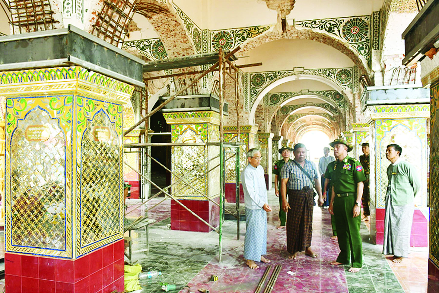 ထို့နောက် အရှေ့ဘက်စောင်းတန်းရှိ ဓာတ်တော်တိုက်နေရာ၊ မြတ်စောညီနောင်ဘုရားနှင့် ရသေ့ကြီးဦးခန္တီသီတင်းသုံးသော မဏ္ဍပ်နေရာ၊ နှစ်ကျိပ်ရှစ်ဆူဘုရား၊ ဗျာဒိတ်ပေးရုပ်ပွားတော်မြတ်ကြီး နေရာများသို့သွားရောက်၍ အပျက်အစီးများ ဖယ်ရှားရှင်းလင်းရေးနှင့် ပြန်လည်ပြုပြင်တည်ဆောက်ရေးလုပ်ငန်းများ အမြန်ဆုံးဆောင်ရွက်သွားရန် မှာကြားပြီး လိုအပ်သည်များ ပေါင်းစပ်ညှိနှိုင်း ဆောင်ရွက်ပေးသည်။