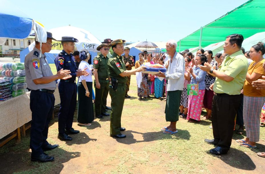 ထိုသို့ ဆောင်ရွက်ပေးလျက်ရှိရာ ငလျင်ဒဏ်ကြောင့် စစ်ကိုင်းမြို့နယ်အတွင်းရှိ ဘုန်းတော်ကြီးကျောင်းများနှင့် သီလရှင်ကျောင်းများ၌ ပျံလွန်၊ ကွယ်လွန်ခဲ့ကြသည့် ရဟန်း၊ ရှင်၊ လူ ပြည်သူများအတွက် လှူဒါန်းထောက်ပံ့ပေးအပ်ပွဲကို ယနေ့နံနက်ပိုင်းတွင် စစ်ကိုင်းမြို့၊ ပါရမီရပ်ကွက်ရှိ နှစ်(၇၀၀)အားကစားခန်းမ၌ ပြုလုပ်ရာ စစ်ကိုင်းမြို့၊ လေးကျွန်းမြေရပ်၊ လေးကျွန်းမြေအုဌ်ကျောင်းတိုက် ဆရာတော် ဘဒ္ဒန္တဓမ္မပိယာလင်္ကာရအမှူးပြုသော ဆရာတော်၊ သံဃာတော်များ ကြွရောက်တော်မူကြပြီး စစ်ကိုင်းတိုင်းဒေသကြီးဝန်ကြီးချုပ် ဦးမြတ်ကျော်၊ ကာကွယ်ရေးဦးစီးချုပ်ရုံး(ကြည်း)မှ ဒုတိယဗိုလ်ချုပ်ကြီး သက်ပုံ၊ ပျံလွန်၊ ကွယ်လွန်ခဲ့ကြသည့် ရဟန်း၊ ရှင်၊ လူ ပြည်သူများ၏ မိသားစုဝင်များနှင့် တာဝန်ရှိသူများ တက်ရောက်ကြသည်။