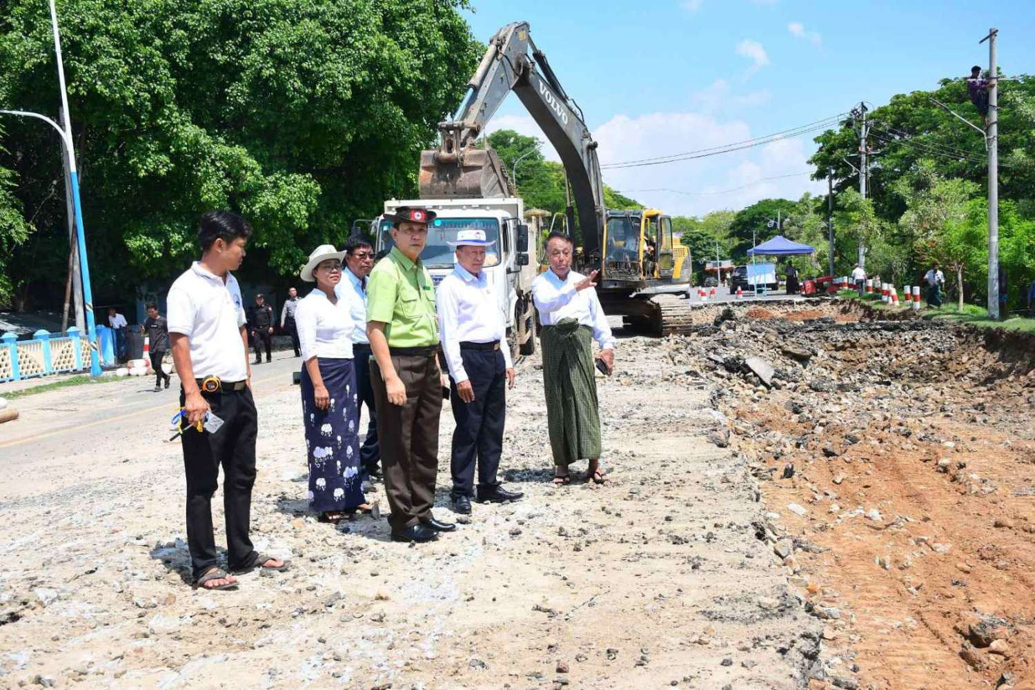 ထိုသို့ကြည့်ရှုစစ်ဆေးရာတွင် ကန်ပေါင်မြေပြိုကျခြင်းနှင့် အက်ကြောင်းဖြစ်ပေါ်ခြင်းအား ပြုပြင်ဆောင်ရွက်ခြင်းလုပ်ငန်းကိုဆောင်ရွက်သည့် မြို့နယ်ဆည်မြောင်းနှင့်ရေအသုံးချရေးစီမံခန့်ခွဲမှုဦးစီးဌာန မြို့နယ်ဦးစီးမှူး ဦးသန်းထိန်က လုပ်ငန်းဆောင်ရွက်အခြေအနေများမှာ ပယ်မြေဖယ်ရှားခြင်းလုပ်ငန်း၊ Sand & Gravel Mixture ခင်းခြင်းလုပ်ငန်း၊ ကန်ပေါင်မြေဖို့ခြင်းလုပ်ငန်းနှင့် ရေစစ်ရိုးကျောက်စီခြင်းလုပ်ငန်းများ ၉၉ ရာခိုင်းနှုန်းဆောင်ရွက်ပြီးစီးကြောင်းကိုလည်းကောင်း၊ လမ်းပိုင်းတည်ဆောက်ရေးလုပ်ငန်းများကို ဆောင်ရွက်သည့် ယုဇနကုမ္ပဏီမှတာဝန်ရှိသူက ကန်ပေါင်တွင် ပြန်လည်တည်ဆောက်မည့် လမ်းလွှာဒီဇိုင်းပတ်သက်၍ ယခင်အသုံးပြုခဲ့ လမ်းလွှာဒီဇိုင်းဟောင်းထက် တမံအပေါ်အားသက်ရောက်မှုညီညာပျံ့နှံ့ပြီး သက်သာစေသော လမ်းလွှာဒီဇိုင်းဖြစ်ပါကြောင်း၊ ယခုပြန်လည်တည်ဆာက်မည့်လမ်းပိုင်းကို ကျောက်ကတ္တရာလမ်းခင်းခြင်းဆောင်ရွက်ပြီး မိုးရာသီကုန်ချိန်တွင် နိုင်လွန်ကတ္တရာခင်းခြင်း ဆက်လက်ဆောင်ရွက်မည်ဖြစ်ပါကြောင်း၊ လမ်းတည်ဆောက်ရေးလုပ်ငန်းတွင် သွားလာဆက်သွယ်မှုအဆင်ပြေစေရန်အတွက် လမ်းတစ်ခြမ်းပိတ်၍ လုပ်ငန်းများဆောင်ရွက်ကာ ကျန်တစ်ခြမ်းတွင် လုပ်ငန်းသုံးမော်တော်ယာဉ်များ သွားလာနိုင်ရန်ဖွင့်ထားပါကြောင်း စသည်တိုင်းဒေသကြီးလမ်းပန်းဆက်သွယ်ရေးဝန်ကြီးအား ရှင်းလင်းတင်ပြသည်။ ထိုနောက် တိုင်းဒေသကြီးလမ်းပန်းဆက်သွယ်ရေးဝန်ကြီးသည် ရန်ကုန်-မန္တလေး ကားလမ်းပိုင်းနေရာ (မိတ္ထီလာတောင်ကန် ကန်ပေါင်) ပြိုကျပျက်စီးမှု ပြုပြင်တည်ဆောက်နေမှုလုပ်ငန်းများအား ကြည့်ရှုစစ်ဆေးခဲ့ပြီး လုပ်ငန်းများ အဆင်ပြေချောမွေ့စွာ အမြန်ဆုံးပြီးစီးနိုင်ရေးအတွက် လိုအပ်သည်များကို မှာကြားခဲ့ကြောင်းသိရသည်။