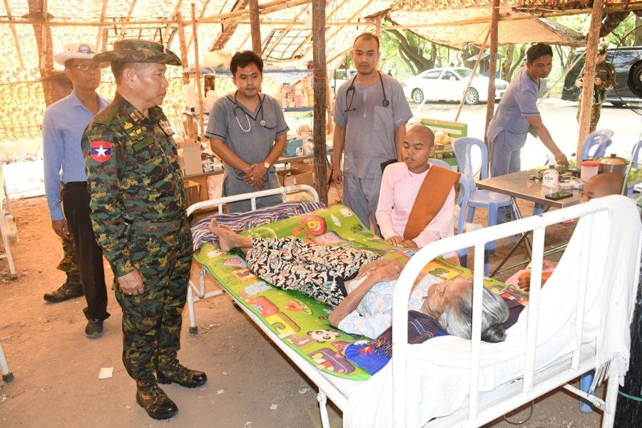 ထိုသို့ ဆောင်ရွက်ပေးလျက်ရှိရာ ယနေ့တွင် ကာကွယ်ရေးဦးစီးချုပ်ရုံး(ကြည်း)မှ ဒုတိယဗိုလ်ချုပ်ကြီးသက်ပုံနှင့် တာဝန်ရှိသူများသည် စစ်ကိုင်းတောင်ရိုးရှိ ဆွမ်းဦးပုညရှင်စေတီနှင့် ဥမင်သုံးဆယ်စေတီတို့၌ ငလျင်ဒဏ်ကြောင့်ပြိုကျပျက်စီးလျက်ရှိသော သာသနိကအဆောက်အအုံများအား ရှင်းလင်းဖယ်ရှားနေမှုအခြေအနေများ စစ်ကိုင်းမြို့ သောတပန်ရပ်ကွက်ရှိ ငလျင်ဒဏ်ကြောင့် ပြိုကျပျက်စီးလျက်ရှိသော အောင်မြေဘုံစံကျောင်းတိုက် သာသနိကအဆောက်အဦများကို စက်ယန္တာရားကြီးများဖြင့် ဖယ်ရှားရှင်းလင်းနေမှုများနှင့် သံပုဏ္ဏာရာမကျောင်းတိုက် ကျောင်းပုရဝုဏ်အတွင်း ငလျင်ဘေးသင့် ရဟန်း၊ သံဃာ၊ သီလရှင်၊ ပြည်သူများအတွက် တပ်မတော်နယ်လှည့်ဆေးကုသရေးအဖွဲ့၏ ကျန်းမာရေးစောင့်ရှောက်ပေးနေမှုများကို ကြည့်ရှုအားပေးပြီး လိုအပ်သည်များ ညှိနှိုင်းဆောင်ရွက်ပေးသည်။