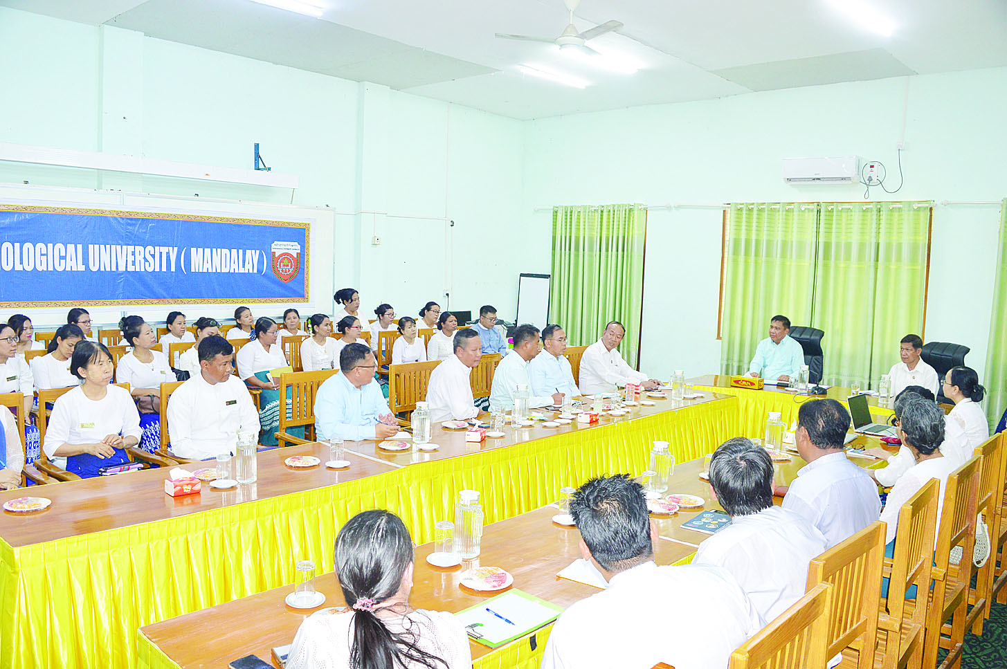 ထို့နောက် ပြည်ထောင်စုဝန်ကြီးသည် မန္တလေးမြို့သို့ရောက်ရှိပြီး မြန်မာသတင်းအချက် အလက်နည်းပညာတက္ကသိုလ်သို့ သွားရောက်ကာ ပင်မစာသင်ဆောင်တွင် ပြိုကျပျက်စီးမှုနှင့် အကြီးစားပြုပြင်ရန် လိုအပ်မှုအခြေအနေများ၊ ဝန်ထမ်းအိမ်ရာ အဆောက်အအုံများရှိ ပြုပြင်ရန်လိုအပ်မှုအခြေအနေများ၊ ICT အသုံးပြု၍ သင်ကြားသင်ယူမှုများ အရှိန်အဟုန်မပြတ် ဆောင်ရွက် နိုင်ရေးအတွက် Data Center ပြုပြင်ထိန်းသိမ်းရန် လိုအပ်ချက်များကို လှည့်လည်ကြည့်ရှုစစ်ဆေးပြီး ကျောင်းပြန်လည်ဖွင့်လှစ်ရာတွင် စာသင်ခန်း၊ လက်တွေ့ခန်းနှင့် ကွန်ပျူတာခန်းလိုအပ်ချက်များ ဖြည့်ဆည်းပေးနိုင်ရေးအတွက် အစိုးရစက်မှုလက်မှုသိပ္ပံ (မန္တလေး) ကျောင်းအုပ်ကြီးနှင့် တာဝန်ရှိသူများအား လိုအပ်သည်များကို ပေါင်းစပ်ညှိနှိုင်း ဆောင်ရွက်ပေးသည်။
