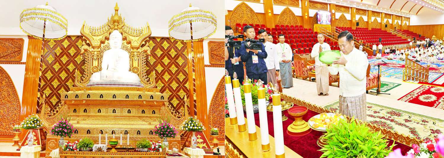 အခမ်းအနားမစတင်မီ နိုင်ငံတော်စီမံအုပ်ချုပ်ရေးကောင်စီ ဒုတိယဥက္ကဋ္ဌ ဒုတိယဝန်ကြီးချုပ်က အဂ္ဂါဓိပတိသာသနာ့ဗိမာန် တော်ကြီးအတွင်းရှိ မာရဝိဇယ နောင်တော်ကြီး ဗုဒ္ဓရုပ်ပွားတော် မြတ်အား မြသပိတ်ဆွမ်းတော်၊ သစ်သီး၊ ပန်းမန်၊ သောက်တော်ရေချမ်းနှင့် ဆီမီးကပ်လှူပူဇော်သည်။