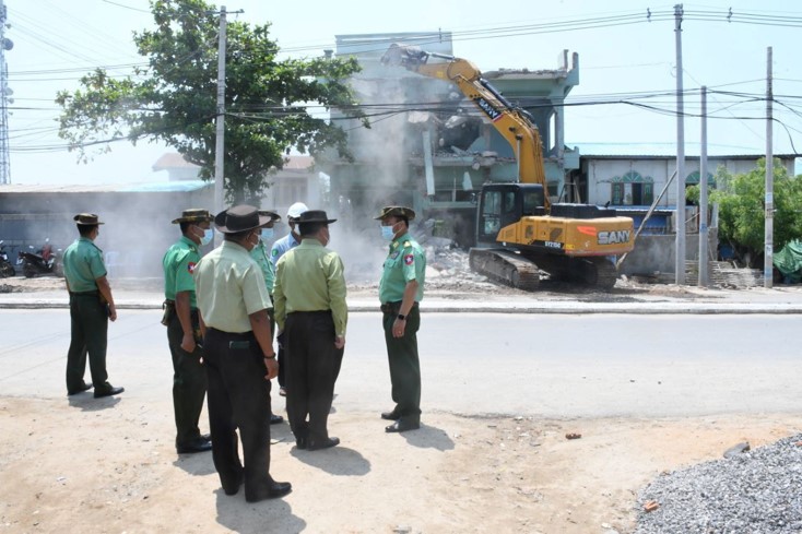 ဆက်လက်ပြီး နေ့လည်ပိုင်းမှာ ကျောက်ဆည်မြို့၊ အေးမြကြည်လင်ရပ်ကွက်ရှိ ငလျင်ဒဏ်ကြောင့် ပြိုကျပျက်စီးခဲ့သော အန္တရာယ်ရှိလူနေအိမ်အဆောက်အဦအား စက်ယန္တရားဖြင့် ရှင်းလင်းဆောင်ရွက်နေမှုအား သွားရောက်ကြည့်ရှုစစ်ဆေးခဲ့ပြီး အဆောက်အအုံများအား ရှင်းလင်းဆောင်ရွက်ရာတွင် ဘေးပတ်ဝန်းကျင်ရှိ အဆောက်အဦများ ထိခိုက်ဆုံးရှုံးမှုမရှိစေဘဲ စနစ်တကျရှင်းလင်းဆောင်ရွက်နိုင်ရေးနှင့် လျှပ်စစ်မီးကြိုးများအား စနစ်တကျကြိုတင်ရှင်းလင်းဆောင်ရွက်နိုင်ရေးတို့အား စစ်ဆေးကြပ်မတ်ဆောင်ရွက်ပေးခဲ့ကာ လုပ်ငန်းခွင်အန္တရာယ်ထိခိုက်မှုမရှိစေရန်နှင့် အပျက်အစီးများအား အမြန်ရှင်းလင်းဆောင်ရွက်နိုင်ရေးတို့အား မှာကြားခဲ့ပြီး တာဝန်ရှိသူများမှ တင်ပြချက်များအပေါ် လိုအပ်သည်များ ပေါင်းစပ်ညှိနှိုင်းဆောင်ရွက်ပေးသည်။ ကျောက်ဆည်ခရိုင်အတွင်း ငလျင်ဒဏ်သင့်အဆောက်အအုံများအား SOP စနစ်ဖြင့် ဘုတ်အဖွဲ့များ ဖွဲ့စည်းစစ်ဆေးခဲ့ရာ ယနေ့အချိန်အထိ အဆောက်အအုံ (၆၉၄၇) လုံးအား စစ်ဆေးခြင်းဆောင်ရွက်ခဲ့ပြီး ပြန်လည်ပြုပြင်နေထိုင်နိုင်မည့် အဆောက်အအုံ (၆၆၁၁) လုံး၊ ဦးစားပေးဖြိုဖျက်ရှင်းလင်းရမည့် အန္တရာယ်ရှိ အဆောက်အအုံ (၃၃၆) လုံးမှ အဆောက်အအုံ (၃၂၁) လုံးတို့အား ရှင်းလင်းဆောင်ရွက်နိုင်ခဲ့ပြီး ဆောင်ရွက်ရန်ကျန် အဆောက်အအုံ (၁၅) လုံး ကျန်ရှိပြီး ကျန်ရှိနေသည့် အဆောက်အအုံ (၁၅) လုံးအနက် ဘာသာရေးဆိုင်ရာအဆောက်အအုံ (၃) လုံးသည် သက်ဆိုင်ရာအဖွဲ့အစည်းများ အစီအစဉ်ဖြင့် ဖျက်သိမ်းလျက်ရှိကြောင်းနှင့် ဌာနဆိုင်ရာအဆောက်အအုံ (၁၂) လုံးသည် သက်ဆိုင်ရာဝန်ကြီးဌာနအစီအစဉ်ဖြင့် စစ်ဆေးမှုခံယူနိုင်ရေးတင်ပြထားကြောင်း သိရှိရသည်။