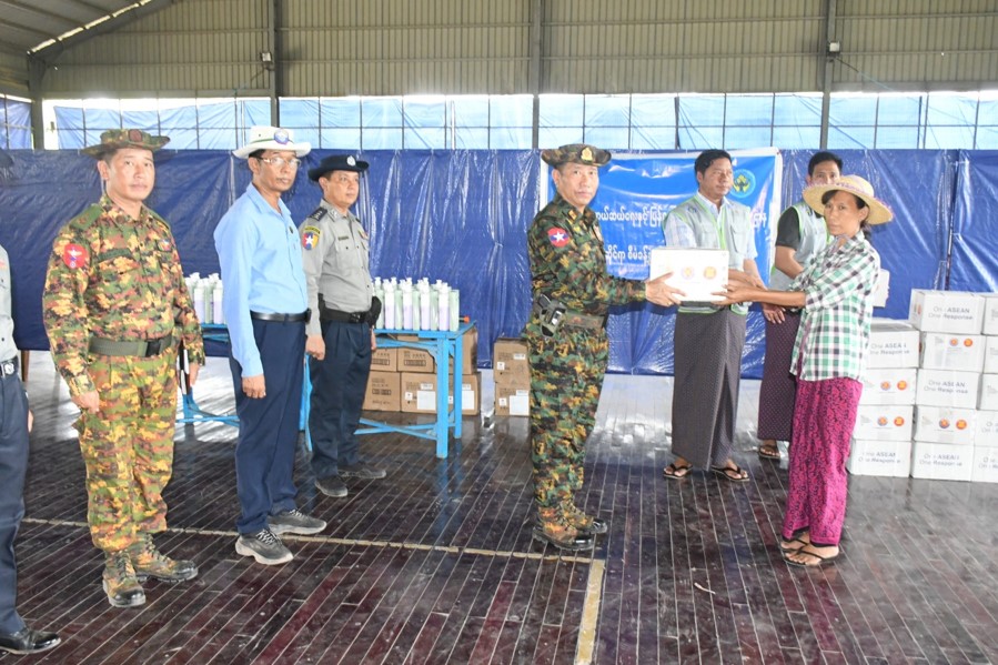 အလားတူ ကာကွယ်ရေးဦးစီးချုပ်ရုံး(ကြည်း)မှ ဒုတိယဗိုလ်ချုပ်ကြီး မျိုးသန့်နိုင်သည် ကျောက်ဆည်မြို့၊ ရွှေမုဋ္ဌောဘုရားရင်ပြင်၌ ပြိုကျပျက်စီးသွားသော သာသနိကအဆောက်အအုံများနှင့် ဂန္ဓကုဋိတိုက်များ၊ ငလျင်ဒဏ်ကြောင့် တိမ်းစောင်းသွားသော ကျောက်သေတ္တာစေတီ၌ မိုးရွာသွန်းမှုများကြောင့် စေတီအောက်ခြေရေမဝင်ရောက်စေရေးအတွက် ပလတ်စတစ်အမိုးများ ဆောင်ရွက်ပြီးစီးမှုအခြေအနေနှင့် ရေတိုက်စားမှုမဖြစ်ပေါ်စေရေး ဆောင်ရွက်ထားရှိမှုအခြေအနေများအား သွားရောက်ကြည့်ရှုစစ်ဆေး၍ ဘုရားပရိဝုဏ်အတွင်း ဝိုင်းဝန်းလုပ်အားပေးဆောင်ရွက်နေသော မီးသတ်တပ်ဖွဲ့ဝင်များနှင့် လူမှုကူညီရေးအသင်းအဖွဲ့များအား စားသောက်ဖွယ်ရာများ ပေးအပ်သည်။