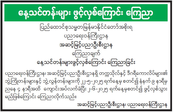 ဝန်ကြီးဌာန ကြေညာချက်များ