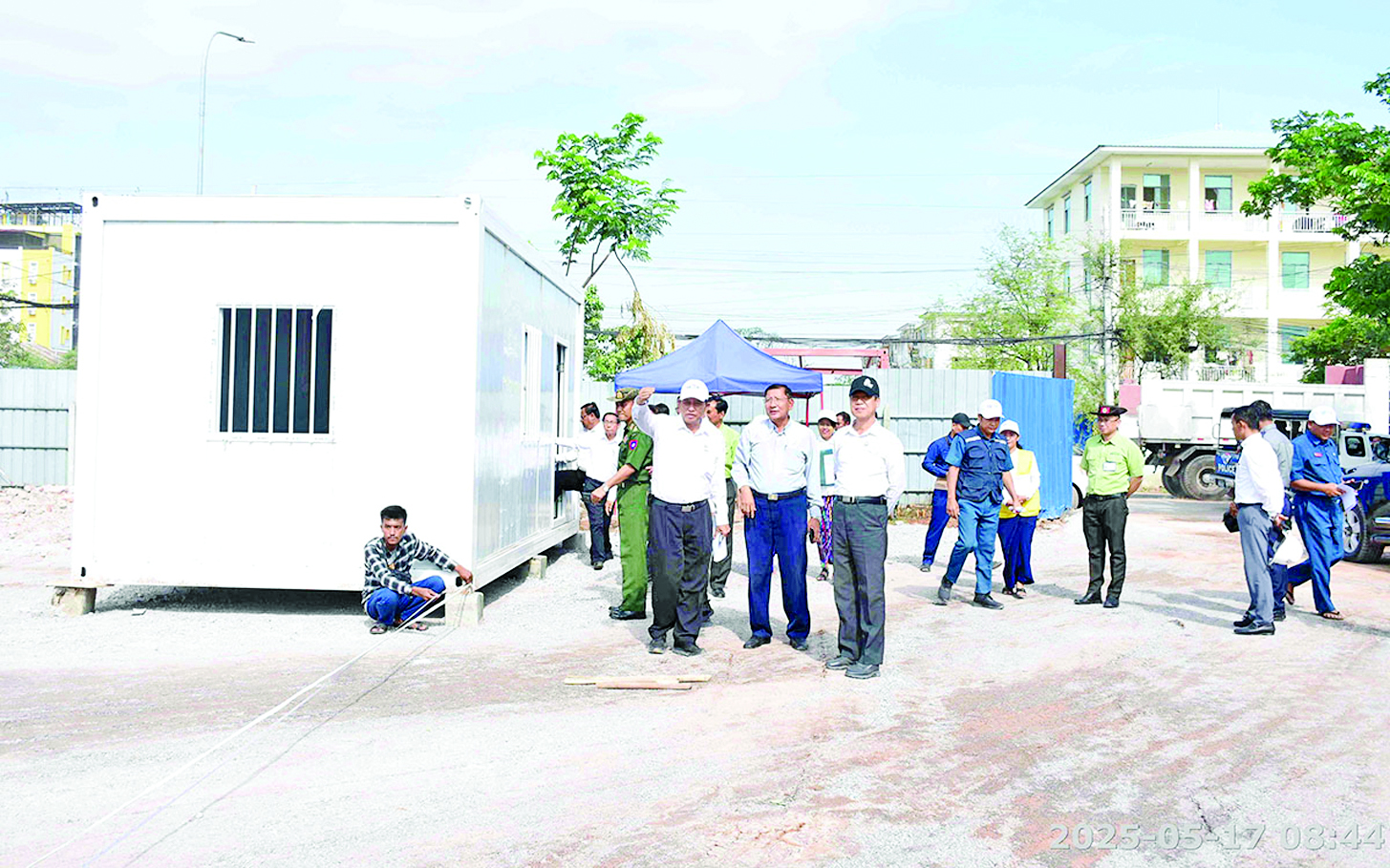 ယင်းနောက် မဟာအောင်မြေမြို့နယ် ၆၆ လမ်း၊ ၃၅ လမ်းနှင့် ၃၆ လမ်းကြား၊ မန္တလေးမြို့တော်စည်ပင်သာယာရေးကော်မတီဝန်ထမ်းများအတွက် ယာယီအဆောက်အအုံ Container House အလုံး ၁၅၀ နေရာချထားတည်ဆောက်နေမှုအခြေအနေများကို လိုက်လံကြည့်ရှုစစ်ဆေးပြီး တာဝန်ရှိသူများ၏ ရှင်းလင်းတင်ပြမှုများအပေါ် လိုအပ်သည်များကို ဖြည့်ဆည်းဆောင်ရွက်ပေးသည်။