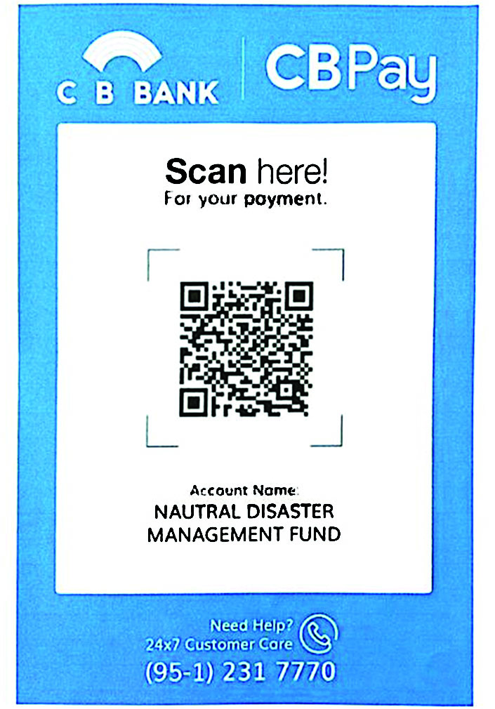 ၂။ အလှူငွေများကို မိုဘိုင်းငွေပေးချေမှုစနစ်ဖြင့် လှူဒါန်းလိုပါက KBZ Pay, CB pay, AYA Pay, OK$, Wave Money တို့၏ QR များကို Scan ဖတ်၍လည်းကောင်း၊ KBZ Pay QR code နံပါတ် 70157401001 သို့လည်းကောင်း၊ Wave Money ဖြင့် လှူဒါန်းလိုပါက ဖုန်းနံပါတ်(၀၉-၂၅၅၀၀၁၅၄၂ နှင့် ၀၉-၂၅၅၀၀၁၅၄၃) တို့သို့ တိုက်ရိုက်ပေးသွင်း၍လည်းကောင်း လှူဒါန်းခြင်းများ ဆောင်ရွက်နိုင်ပါသည်။ ထို့ပြင် ဗဟိုဘဏ်မှခွင့်ပြုထားသော မိမိနှစ်သက်ရာမည်သည့် Digital Wallet သို့မဟုတ် ဘဏ် Mobile Application မှမဆို KBZ Pay MMQR နှင့် CB Pay MMQR၊ OK$ MMQR များကို Scan ဖတ်၍ လှူဒါန်းနိုင်ပါသည်။