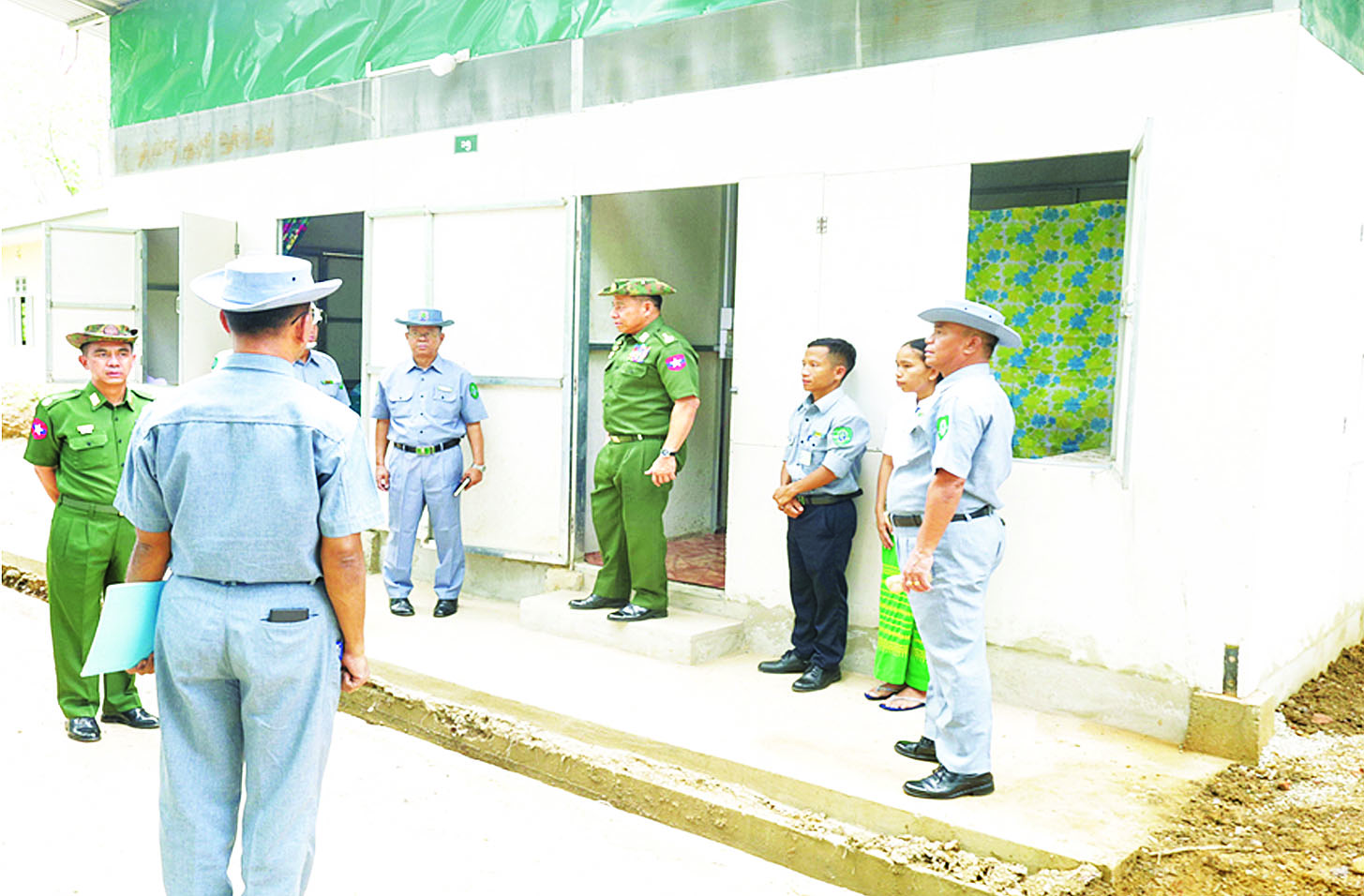 ယင်းနောက် ပြည်ထောင်စုဝန်ကြီးနှင့်အဖွဲ့သည် ယာယီအဆောက်အအုံများအတွင်း ဝန်ထမ်းမိသားစုများ၏ ပြောင်းရွှေ့နေထိုင်စားသောက်နေမှု၊ လျှပ်စစ်မီးတပ်ဆင်ထားရှိမှု၊ ရေချိုးခန်း၊ အိမ်သာများ စနစ်တကျဆောင်ရွက်ထားရှိမှု၊ စွန့်ပစ်ပစ္စည်းများ စနစ်တကျစွန့်ပစ်နိုင်ရေးအတွက် အမှိုက်ကန်များ ဆောင်ရွက်ထားရှိမှုနှင့် ယာယီအဆောက်အအုံများ အပြီးသတ်ဆောင်ရွက်နေမှု အခြေအနေများကို ကြည့်ရှုစစ်ဆေးပြီး လိုအပ်သည်များ မှာကြားဖြည့်ဆည်းဆောင်ရွက်ပေးခဲ့ကြောင်း သိရသည်။