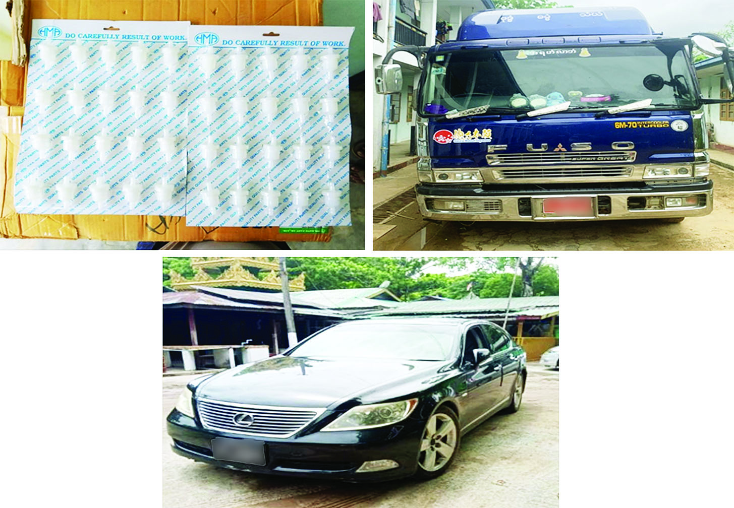 ထို့အတူ ပဲခူးတိုင်းဒေသကြီး တရားမဝင်ကုန်သွယ်မှုတိုက်ဖျက်ရေး အထူးအဖွဲ့၏ စီမံခန့်ခွဲမှုဖြင့် တာဝန်ကျပူးပေါင်းအဖွဲ့များက စစ်ဆေးမှုများဆောင်ရွက်ခဲ့ရာ မေ ၁၉ ရက်တွင် ဘုရားကြီးမြို့ ရွှေသံလွင်တိုးဂိတ်အနီး၌ ဘားအံမြို့မှမန္တလေးမြို့သို့သွားရောက်မည့် မော်တော်ယာဉ်တစ်စီးပေါ်မှ တရားဝင်စာရွက်စာတမ်းအထောက်အထား တင်ပြနိုင်ခြင်းမရှိသည့် လုပ်ငန်းသုံးပစ္စည်းနှစ်မျိုး (ခန့်မှန်းတန်ဖိုးငွေကျပ် ၁၄၃၅၀၀၀၀) နှင့် အဆိုပါပစ္စည်းများ တင်ဆောင်လာသည့် Mitsubishi Fuso Truck တစ်စီး (ခန့်မှန်းတန်ဖိုးငွေကျပ် ၄၀၀၀၀၀၀၀) ကို အကောက်ခွန်လုပ်ထုံး လုပ်နည်းများအရလည်းကောင်း၊ မေ ၂၁ ရက်တွင် ပဲခူးခရိုင်ဝေါမြို့နယ်၌ လိုင်စင်မဲ့ Toyota Lexus မော်တော်ယာဉ်တစ်စီး (ခန့်မှန်းတန်ဖိုး ငွေကျပ် ၈၀၀၀၀၀၀၀) ကို ပို့ကုန်သွင်းကုန်ဥပဒေအရလည်းကောင်း စုစုပေါင်း ခန့်မှန်းတန်ဖိုးငွေကျပ် ၁၃၄၃၅၀၀၀၀ ကို ဖမ်းဆီးအရေးယူ ဆောင်ရွက်လျက်ရှိသည်။