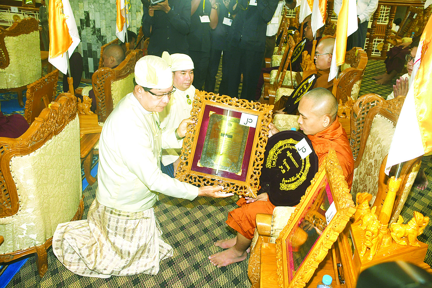 ယင်းနောက် သာသနာရေးနှင့်ယဉ်ကျေးမှုဝန်ကြီးဌာန ပြည်ထောင်စုဝန်ကြီးဦးတင်ဦးလွင်က သာသနာရေးဆိုင်ရာများကို လျှောက်ထားသည်။
