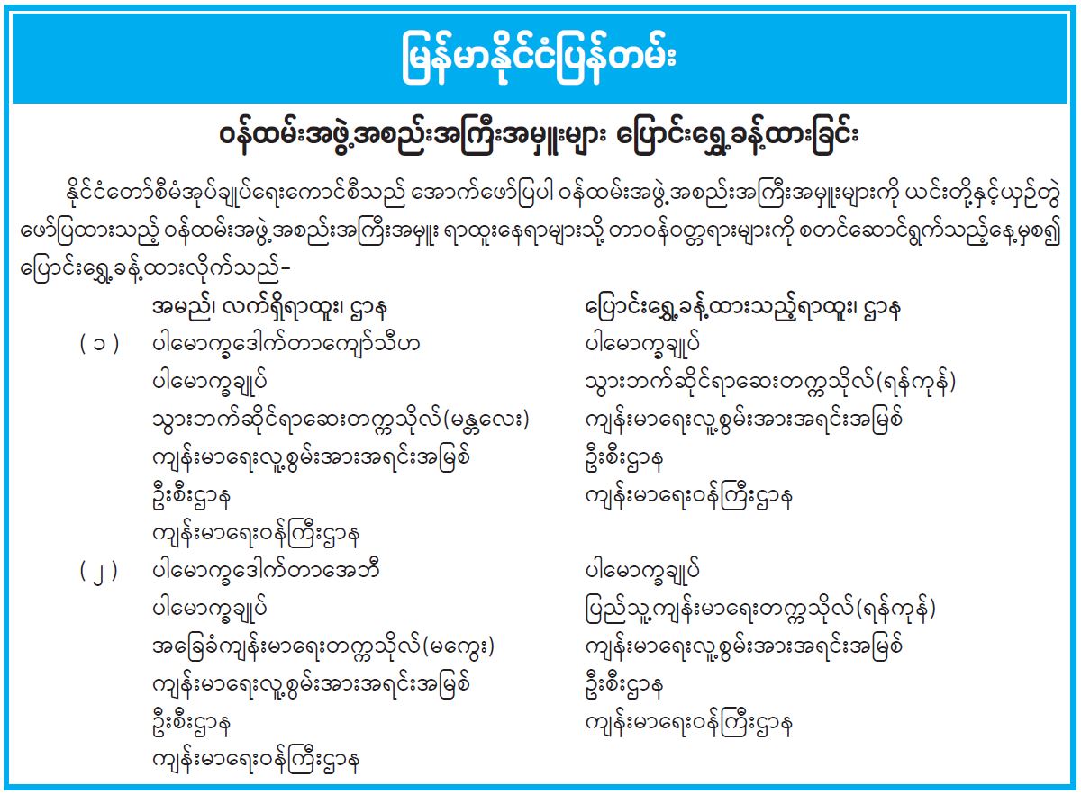 ဝန်ထမ်းအဖွဲ့အစည်းအကြီးအမှူးများ ပြောင်းရွှေ့ခန့်ထားခြင်း