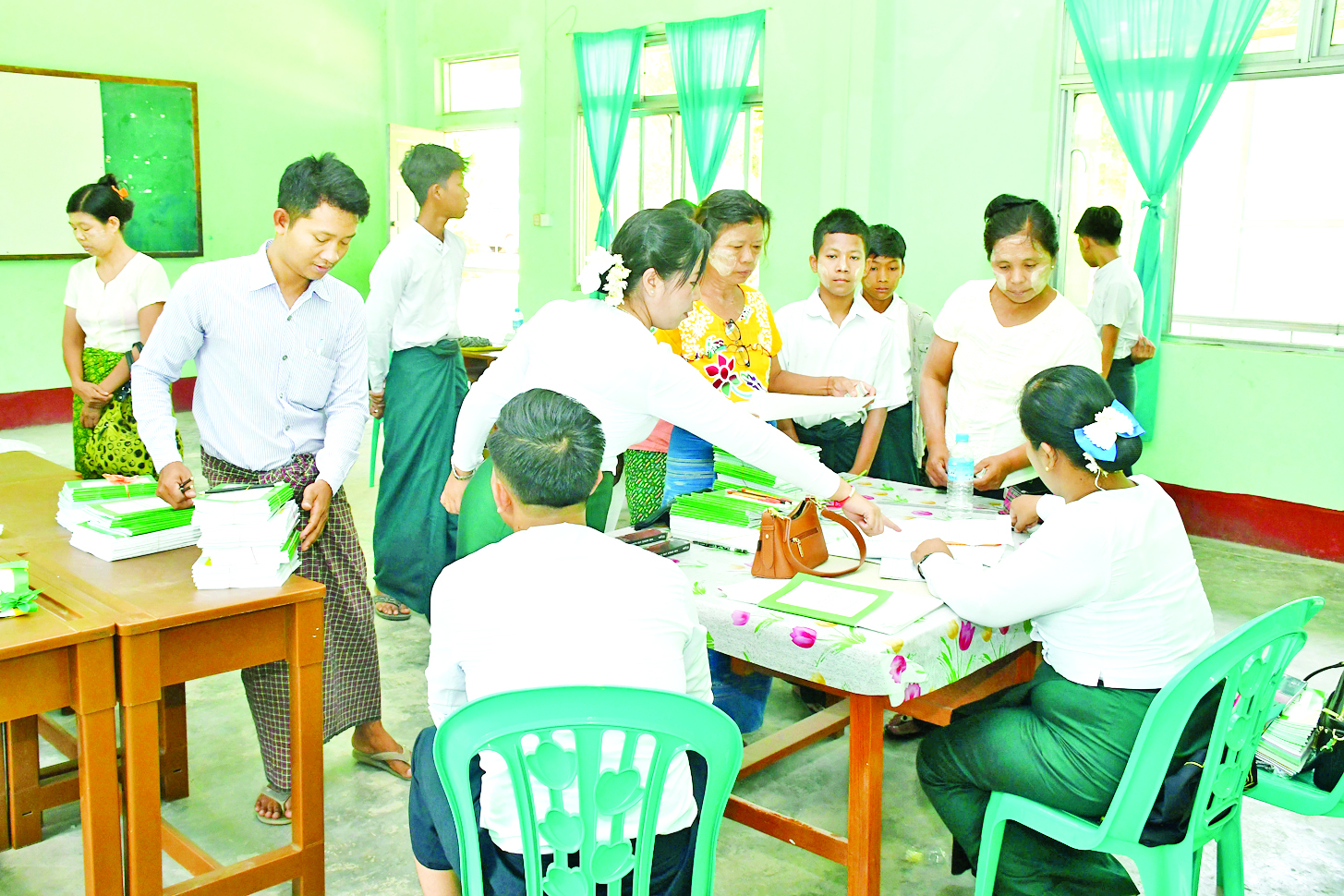 ကျောင်းအပ်နှံရေးလုပ်ငန်းစဉ်များ ဆောင်ရွက်ပေးနေမှုအခြေအနေများနှင့်စပ်လျဉ်း၍ အမှတ်(၅) အခြေခံပညာအထက်တန်းကျောင်းမှ ကျောင်းအုပ်ဆရာကြီး ဦးဝင်းမြင့်ဦးက ဒီနေ့ကျောင်းစတင်အပ်နှံရေးနေ့မှာ ယခင်နှစ်က ကျောင်းသားဟောင်းတွေနဲ့ ထပ်မံ လာရောက်အပ်နှံတဲ့ ကျောင်းသားတွေ ပိုမိုများပြားတာကို တွေ့ရပါတယ်။ ကျောင်းပြောင်းလာရောက် အပ်နှံတဲ့ကျောင်းသား ကျောင်းသူတွေကို အဆင်ပြေစွာ လက်ခံဆောင်ရွက်ပေးနေပါတယ်။ ကျောင်းအပ်နှံရေး အချိန်ကိုတော့ နံနက် ၈ နာရီကနေ ညနေ ၃ နာရီ အထိ သတ်မှတ်ထားပါတယ်။ အခမဲ့ပညာရေး ဖြစ်တဲ့အတွက် နိုင်ငံတော်အစိုးရက အထက်တန်းနဲ့ အလယ်တန်းဆိုရင် ပုံနှိပ်စာအုပ်တစ်စုံ၊ ဗလာစာအုပ်တစ်ဒါဇင်၊ ခဲတံနှစ်ချောင်း၊ ဘောပင်နှစ်ချောင်း ထောက်ပံ့ပေးပါတယ်။ မူလတန်းဆိုရင် ပုံနှိပ်စာအုပ်တစ်စုံ၊ ဗလာစာအုပ်၊ ခဲတံလေးချောင်းနဲ့ ကျောင်းဝတ်စုံထောက်ပံ့ပေးပါတယ်။