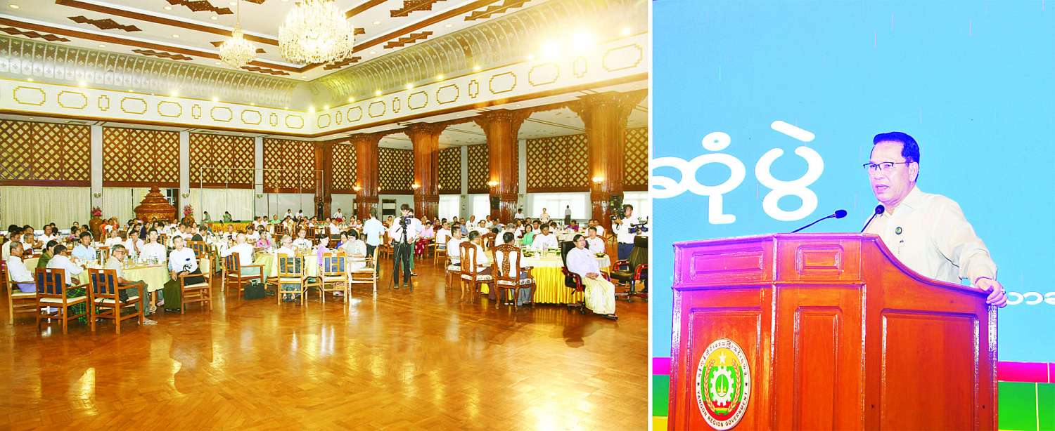ရခိုင်တိုင်းရင်းသားအသင်းအဖွဲ့များနှင့် တွေ့ဆုံပွဲအခမ်းအနားကို ယနေ့နံနက်ပိုင်းတွင် ရန်ကုန်တိုင်းဒေသကြီး အစိုးရအဖွဲ့ရုံးမင်္ဂလာခန်းမ၌ ကျင်းပသည်။
